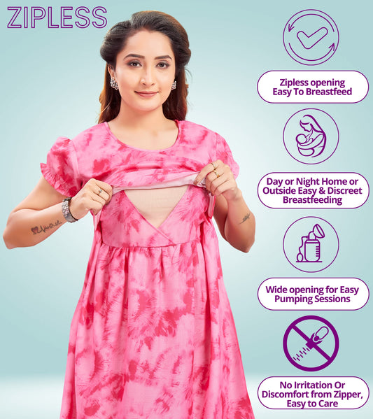 Blushy Pink Cotton Printed Straight Zipless Feeding Kurta