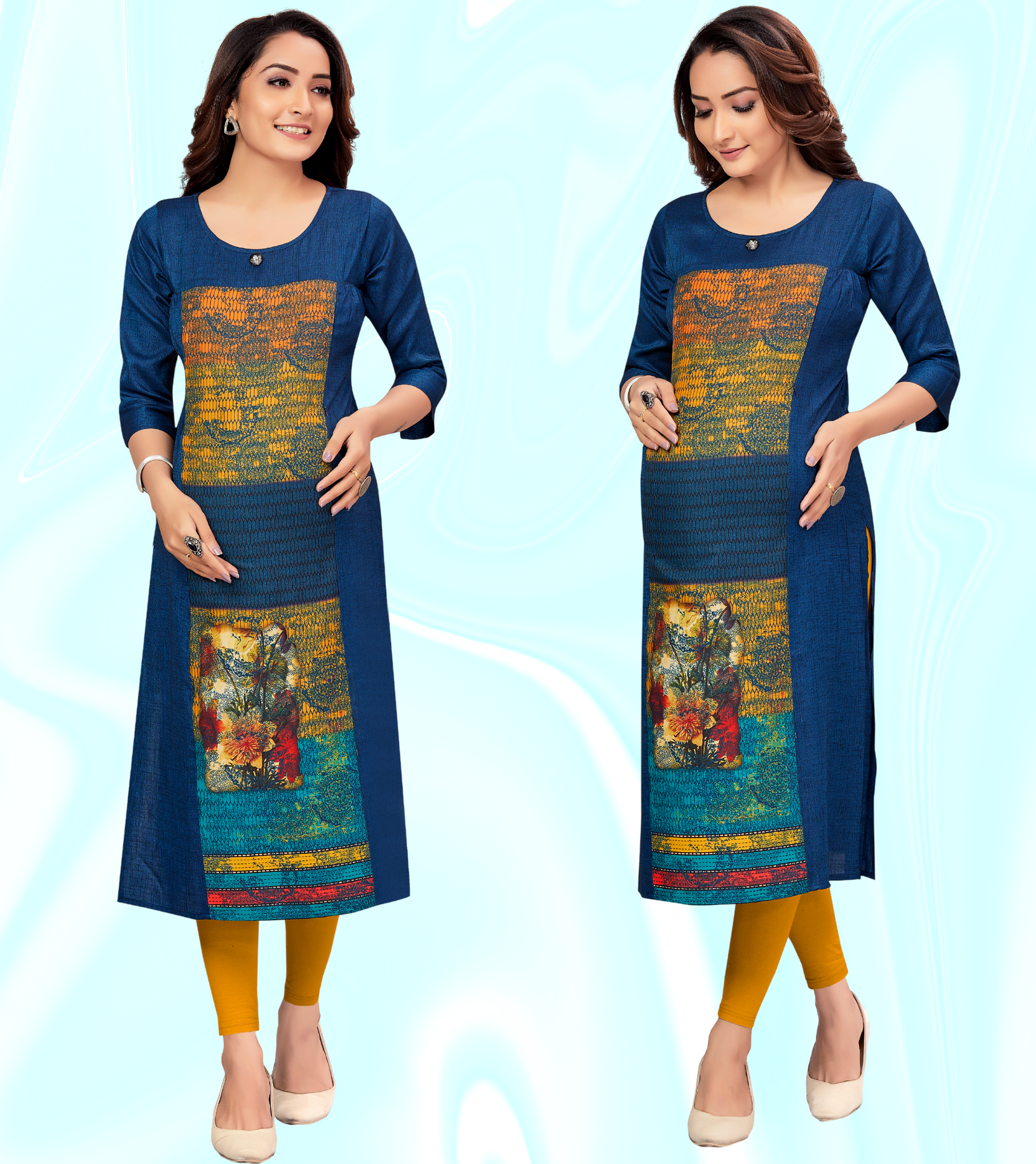 Affectionate Blue Rayon Printed Straight Feeding Kurta