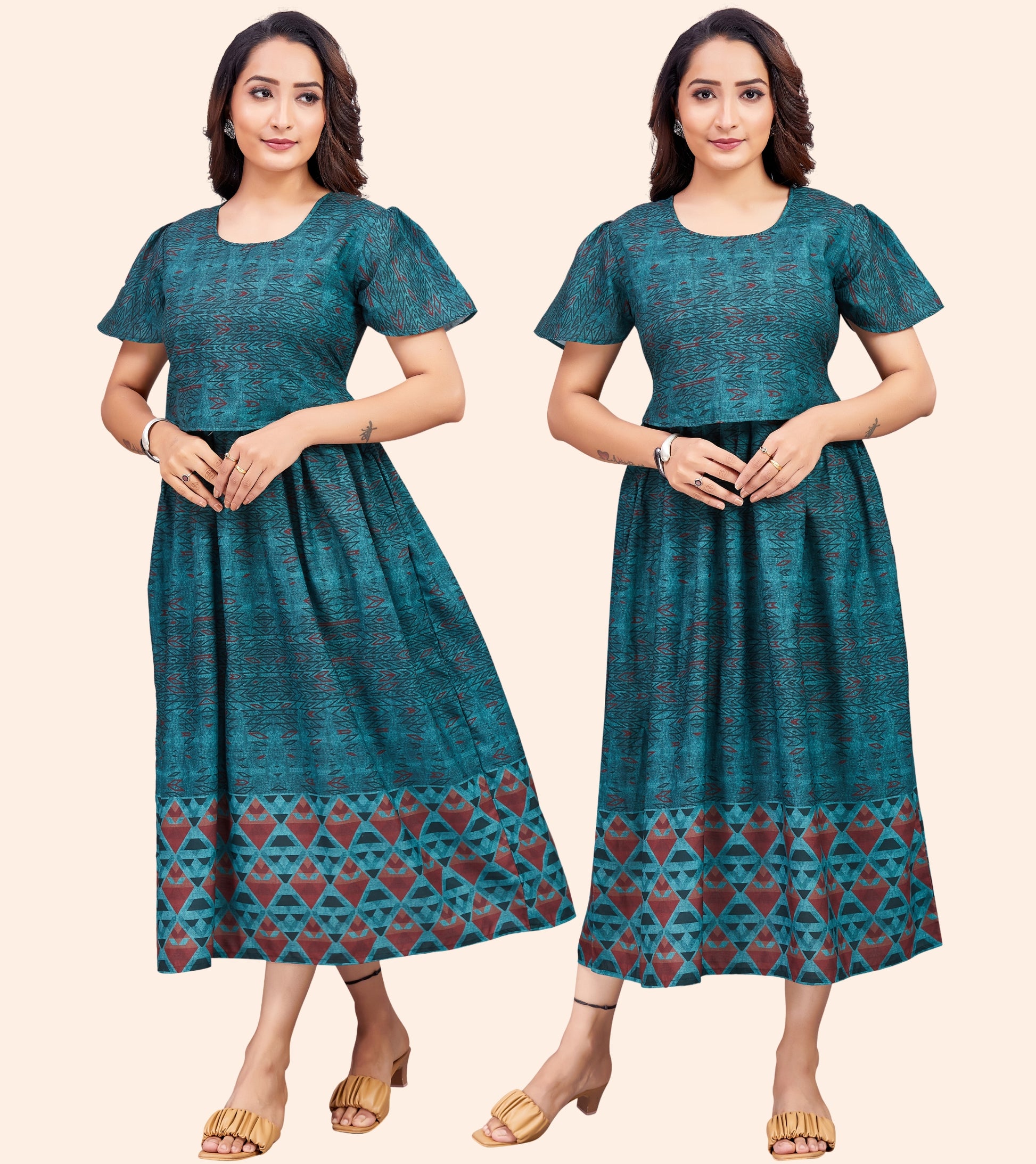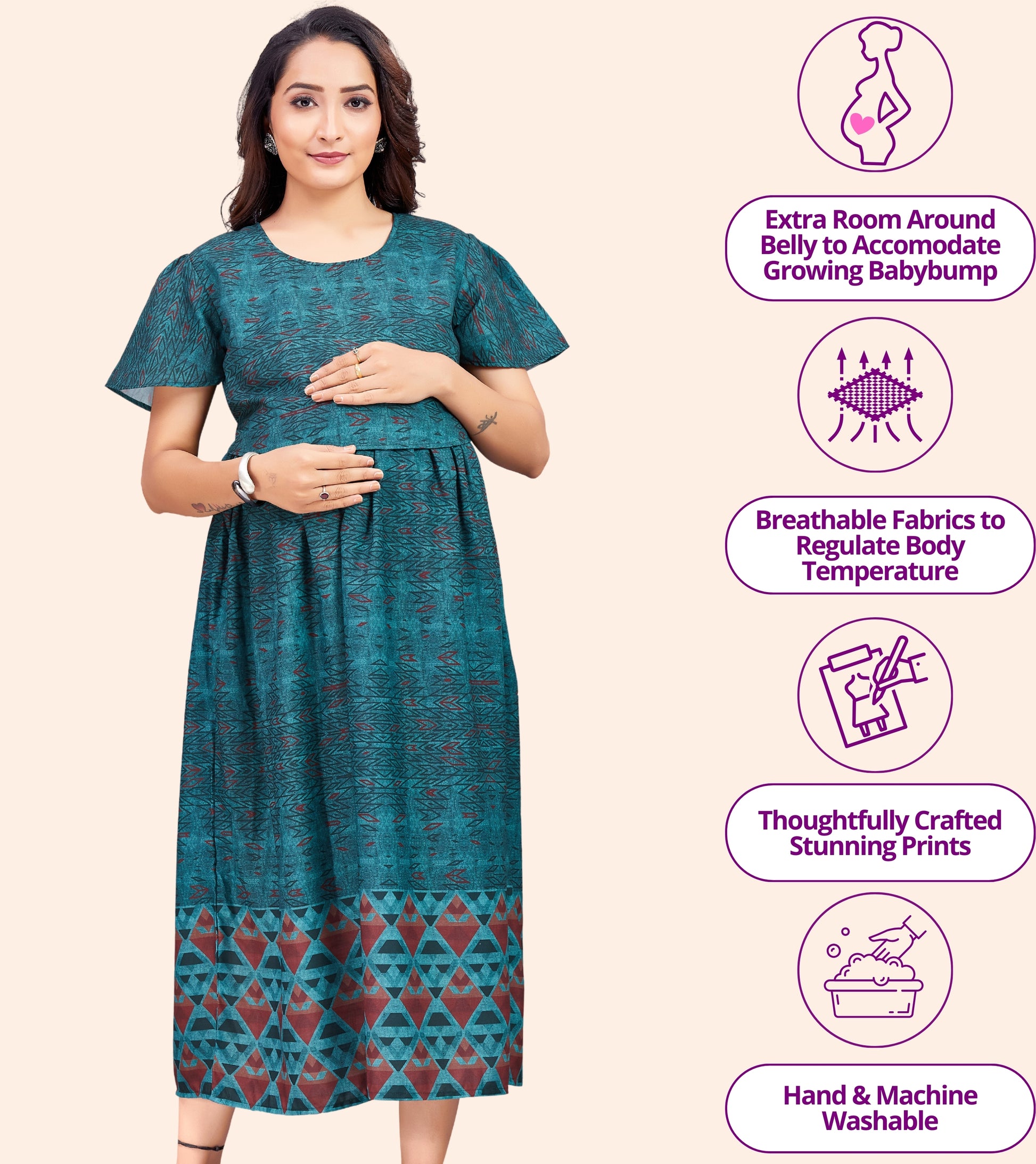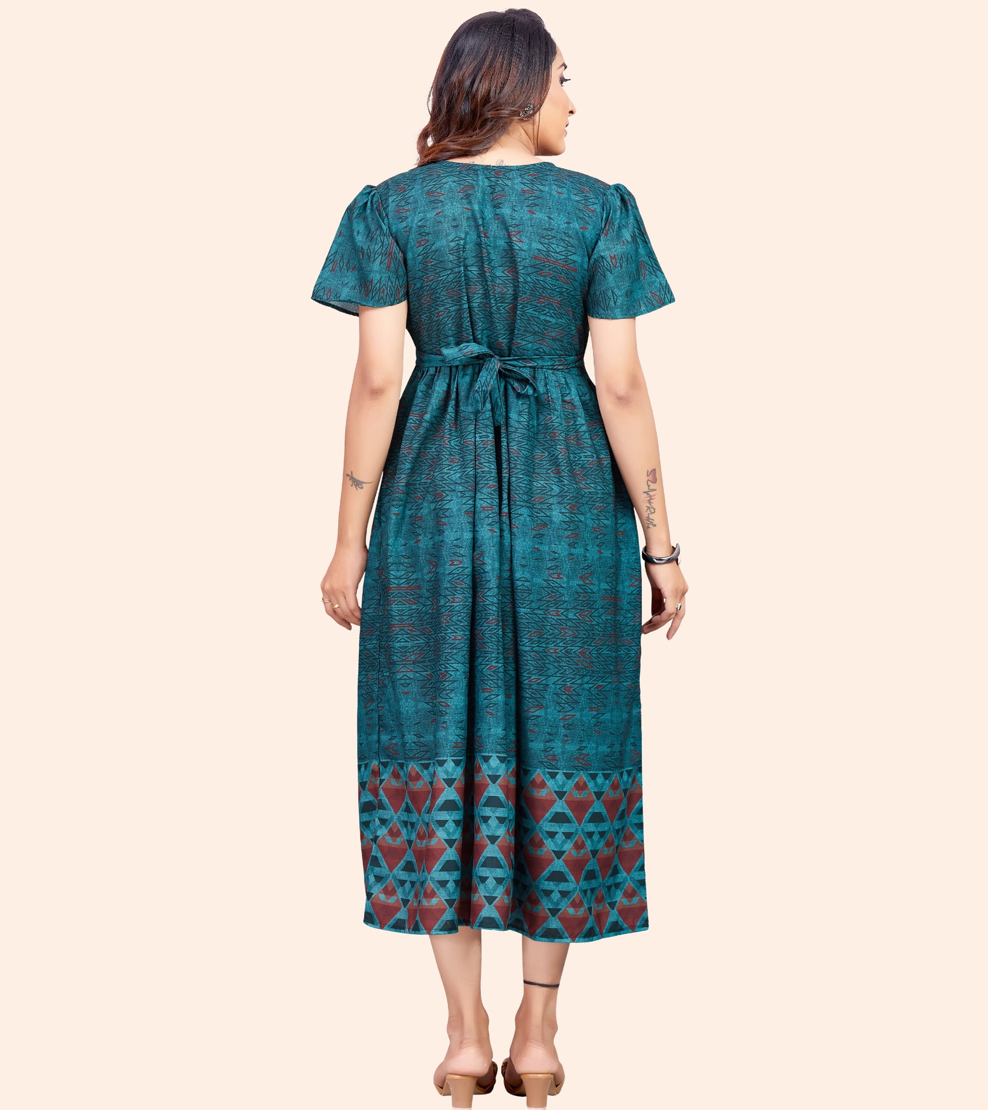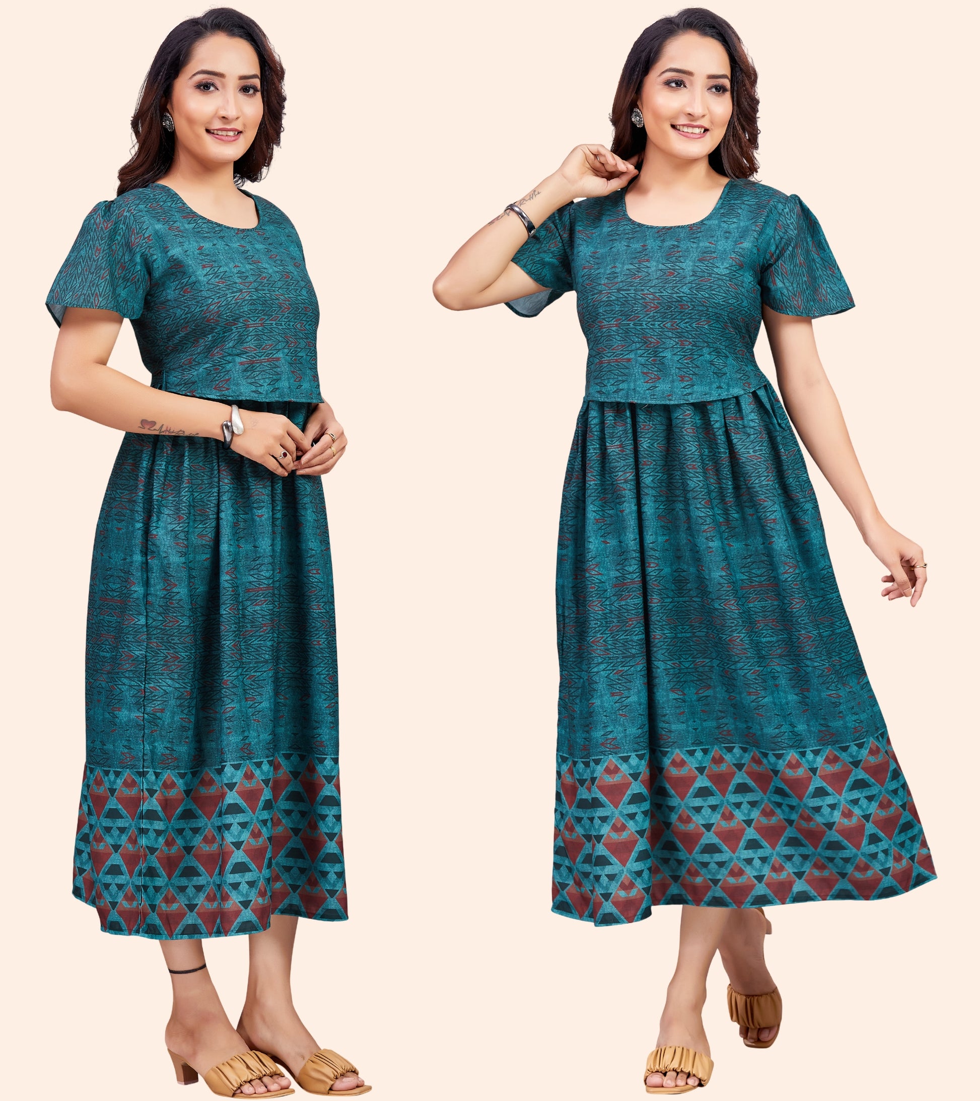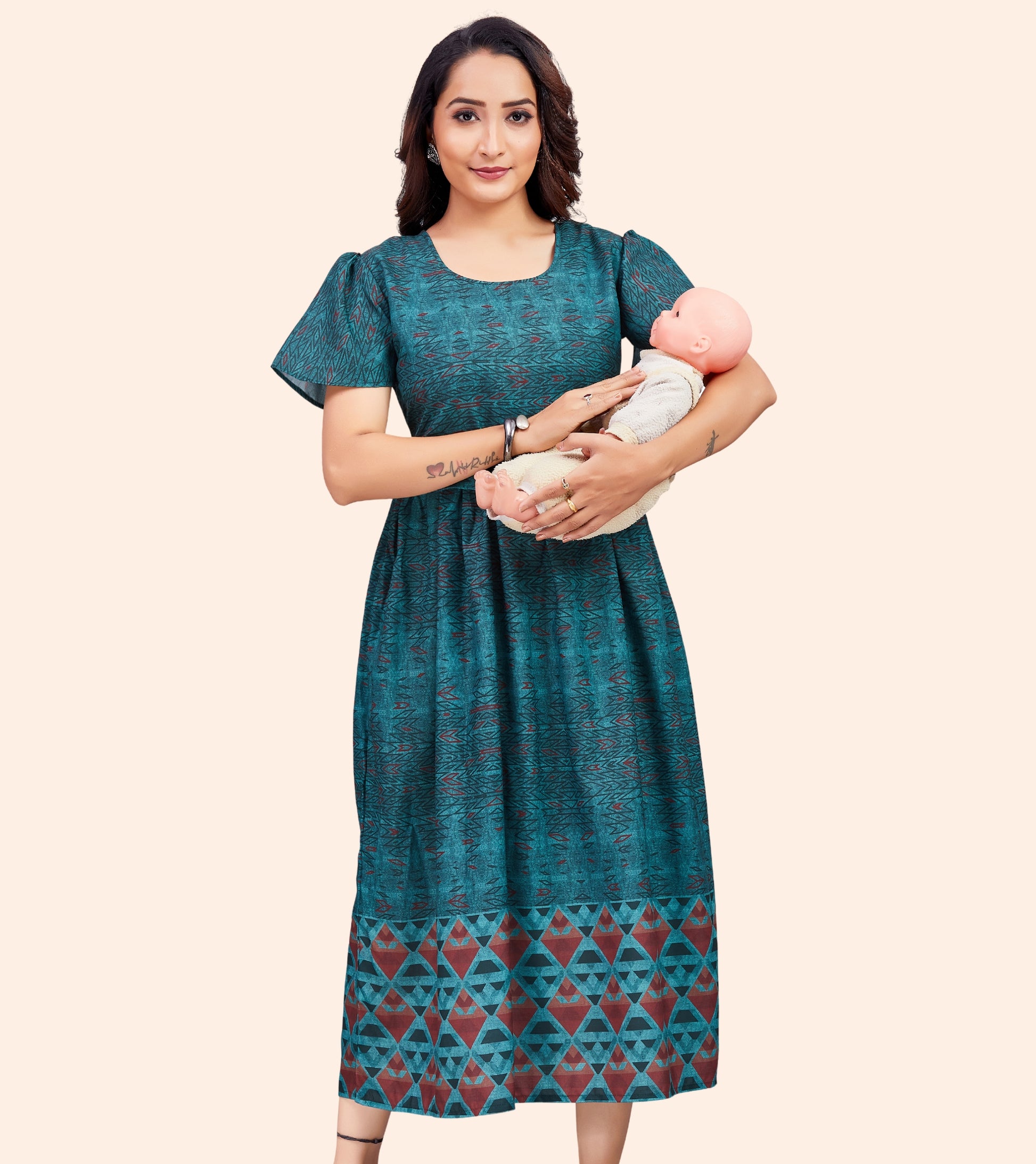 Bottle Green Cotton Printed Flared Zipless Feeding Kurta