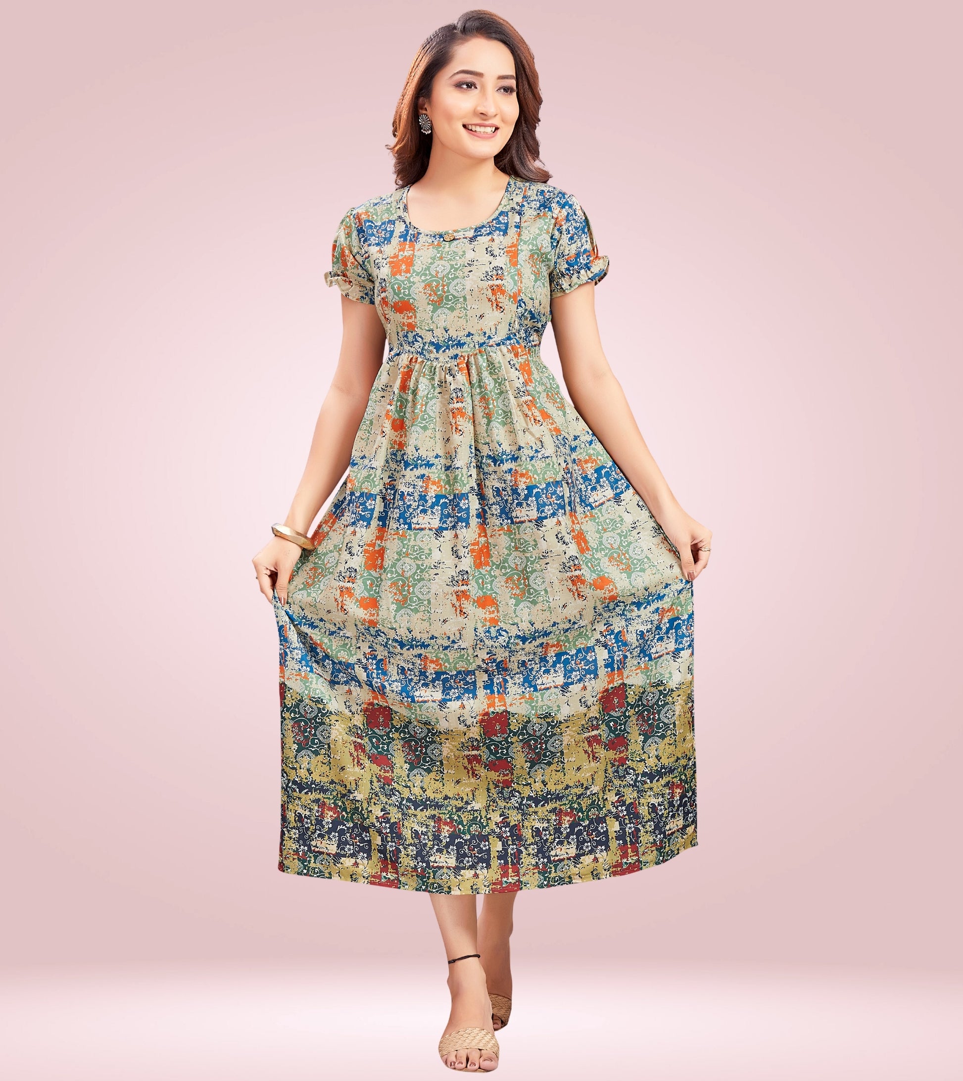 Evening Beige Cotton Printed Flared Feeding Kurta