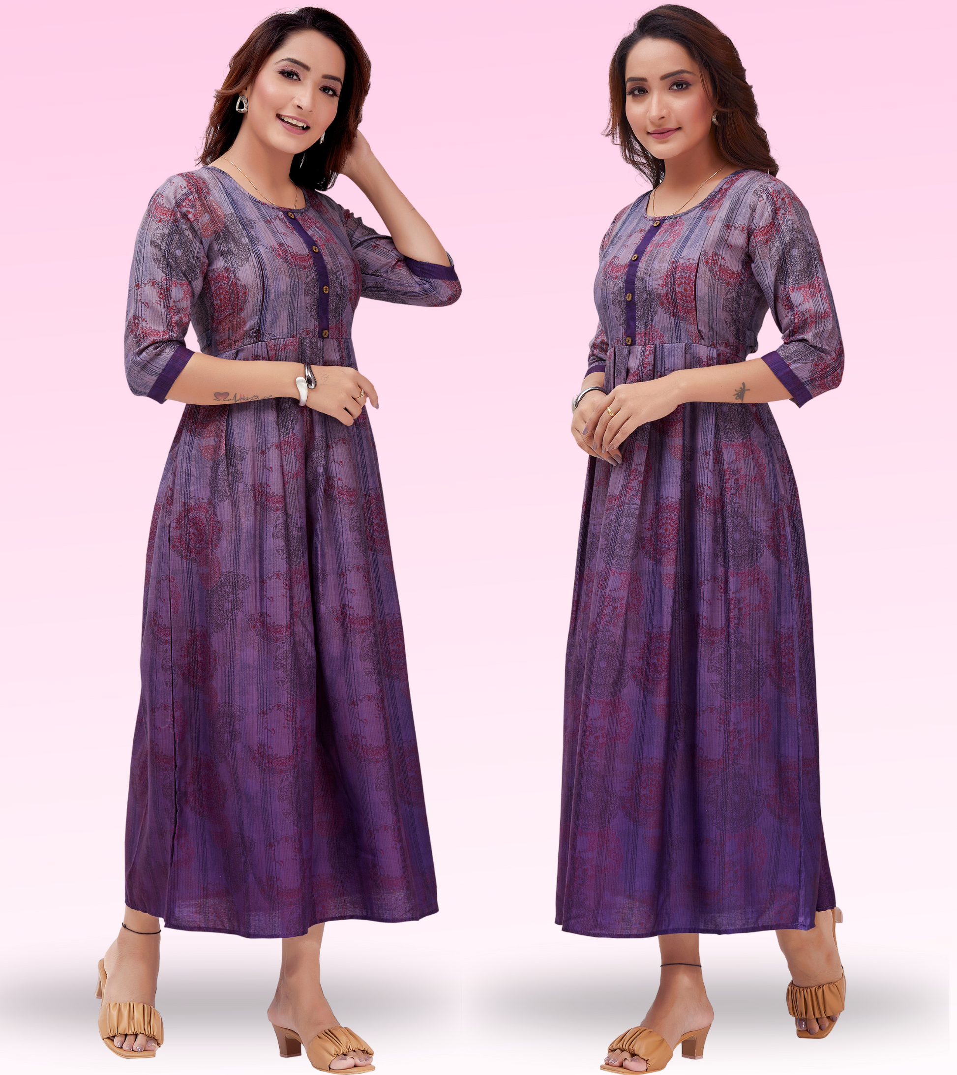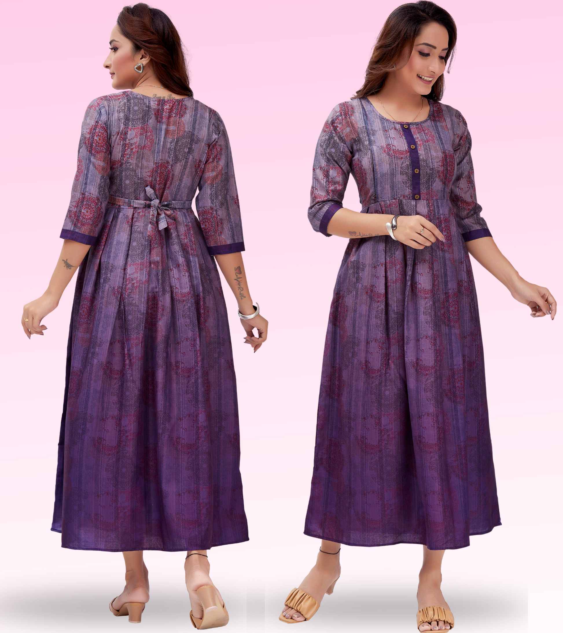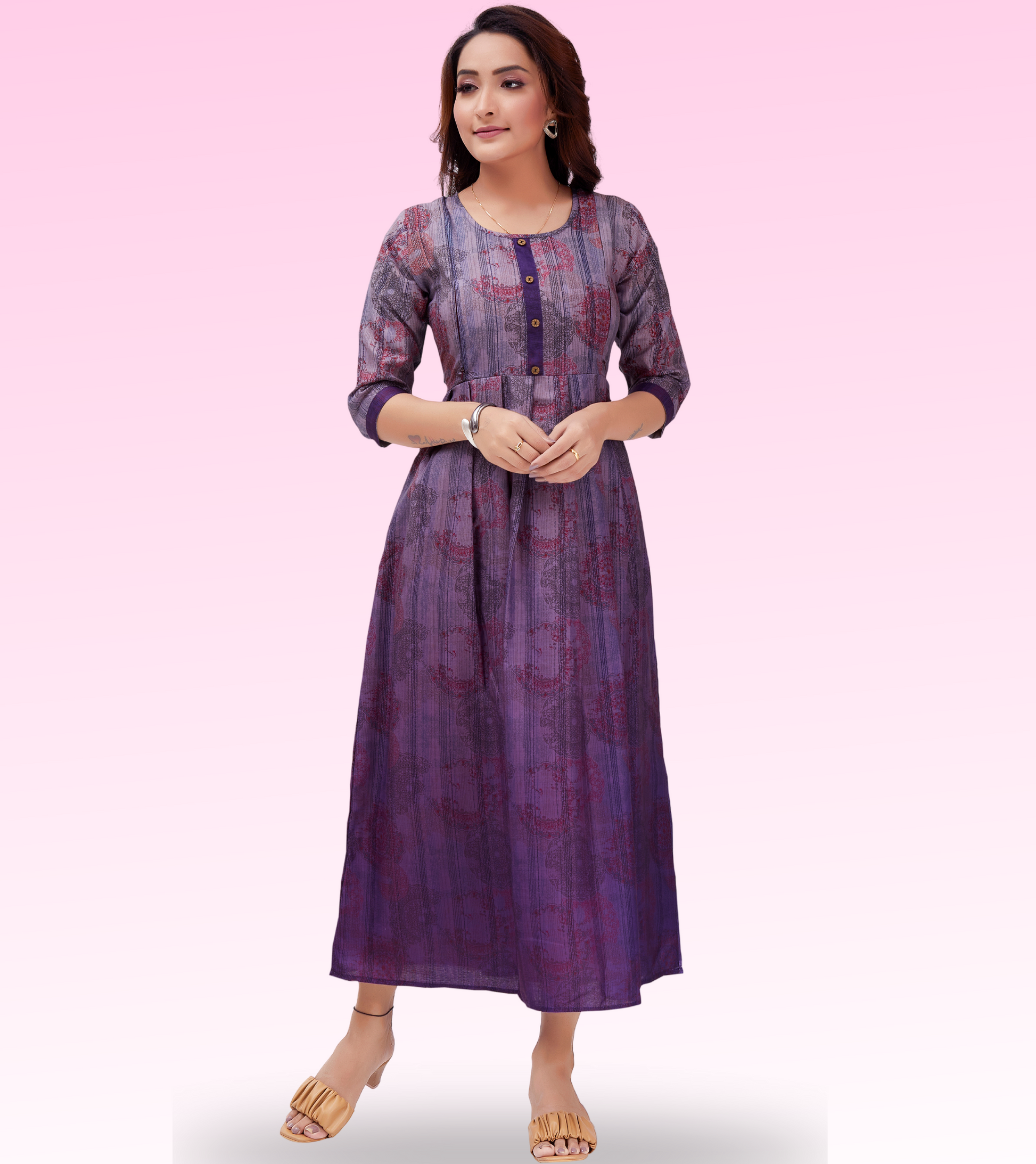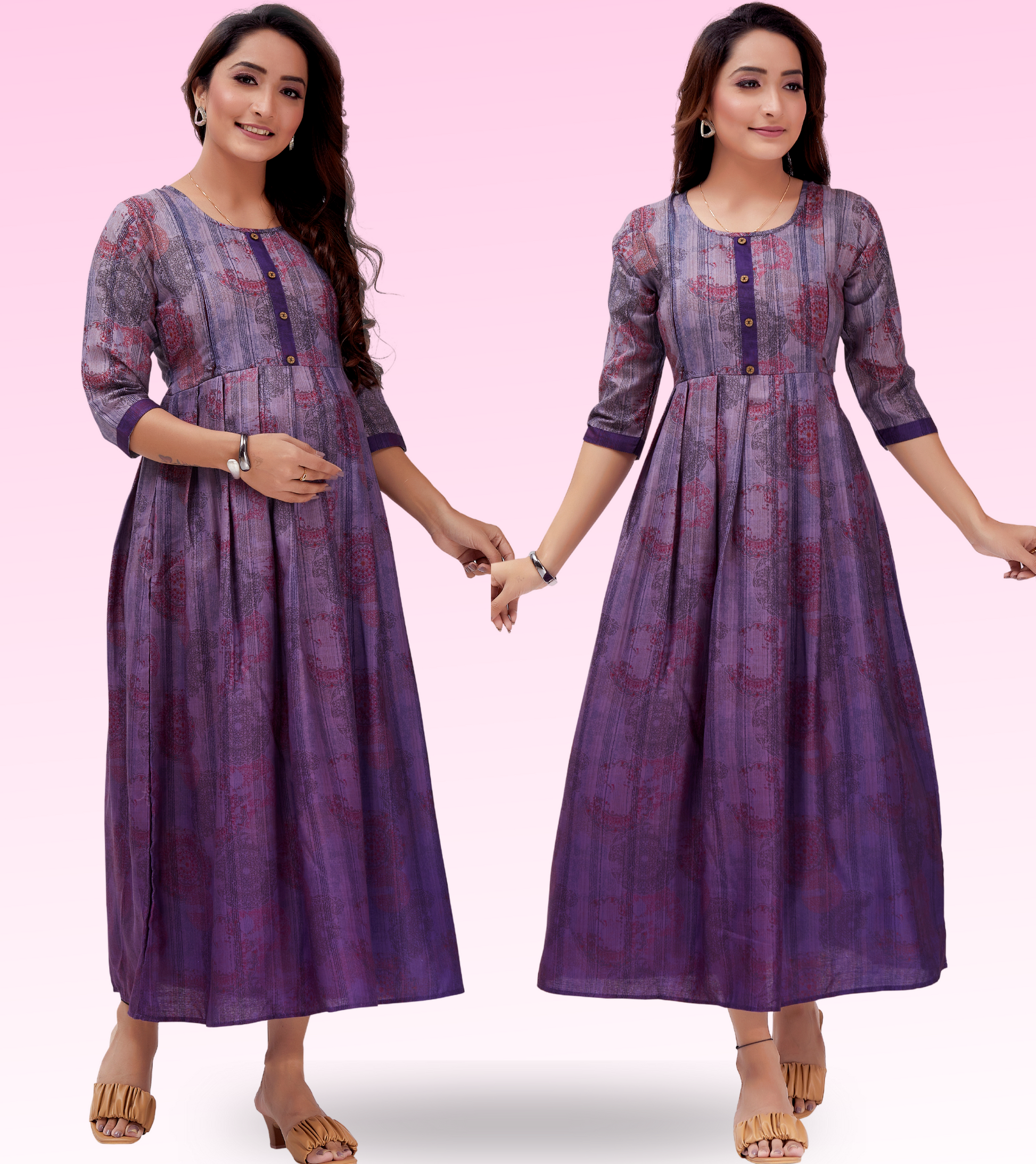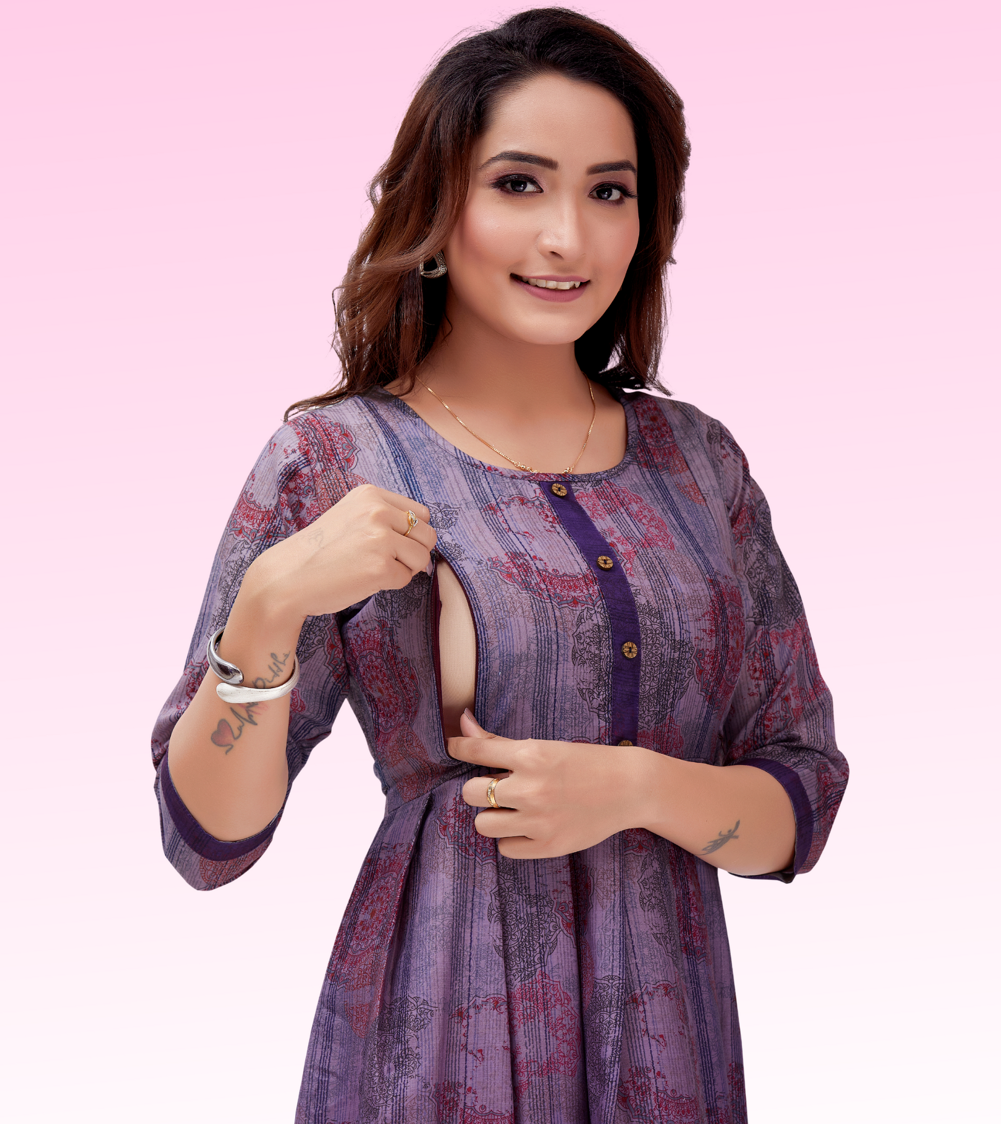 Charming Purple Cotton Printed Flared Feeding Kurta