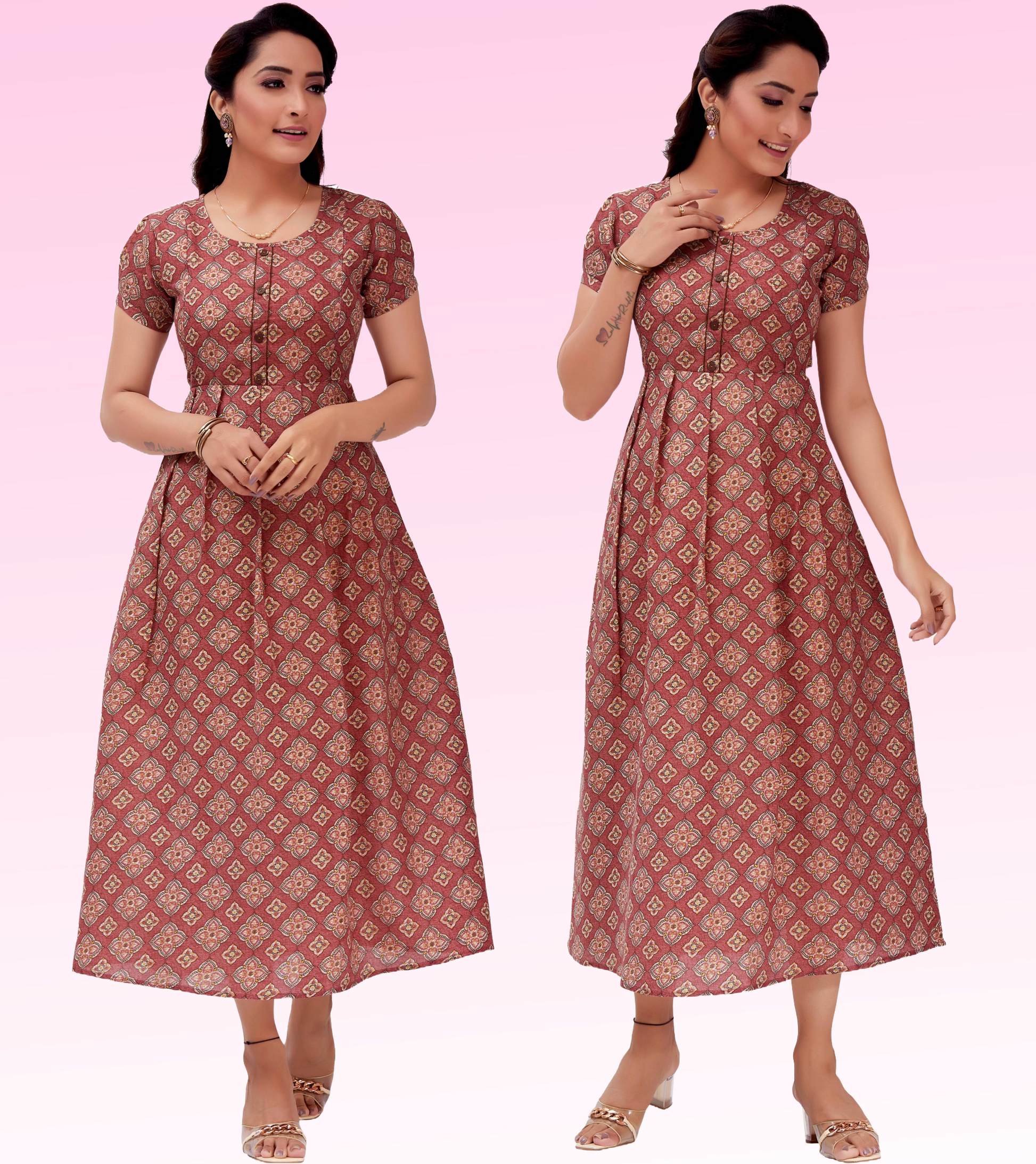 Dusty Wine Cotton Printed Flared Feeding Kurta