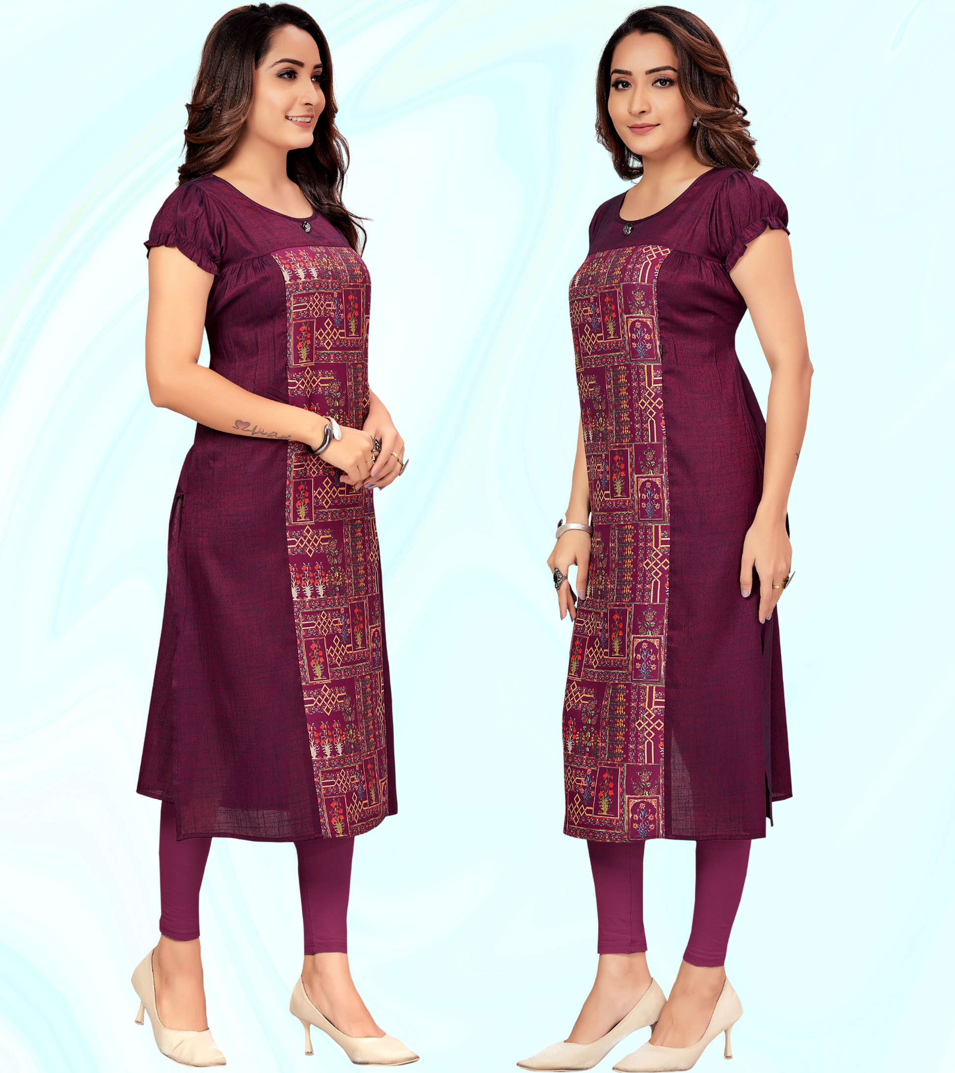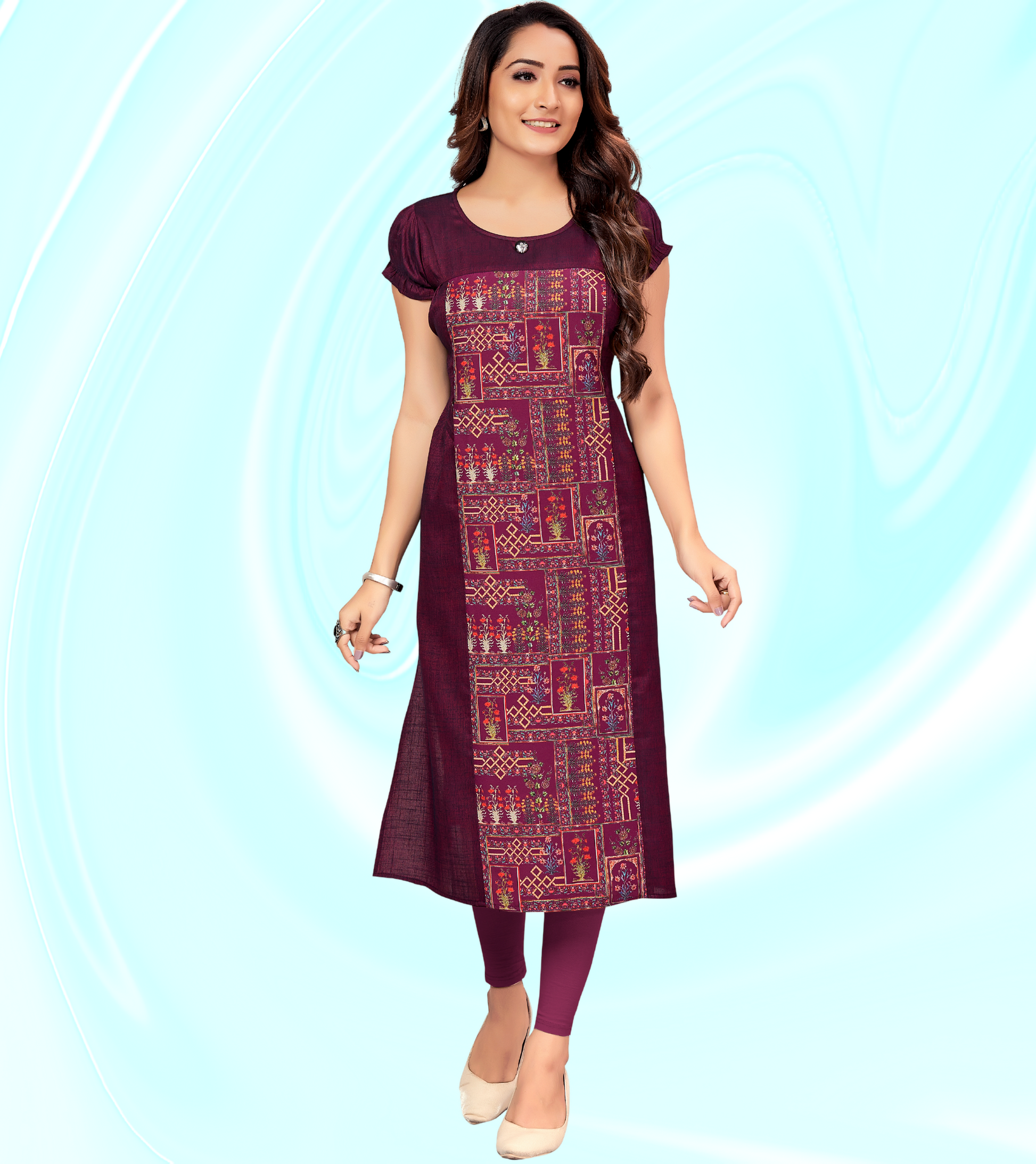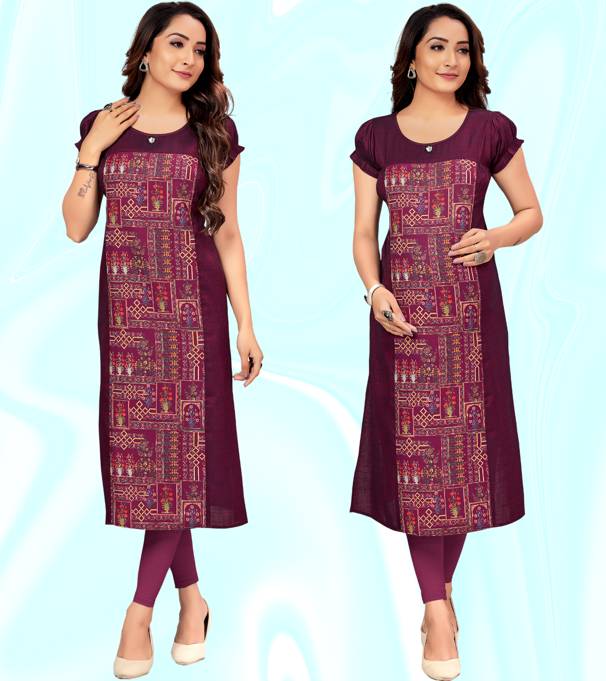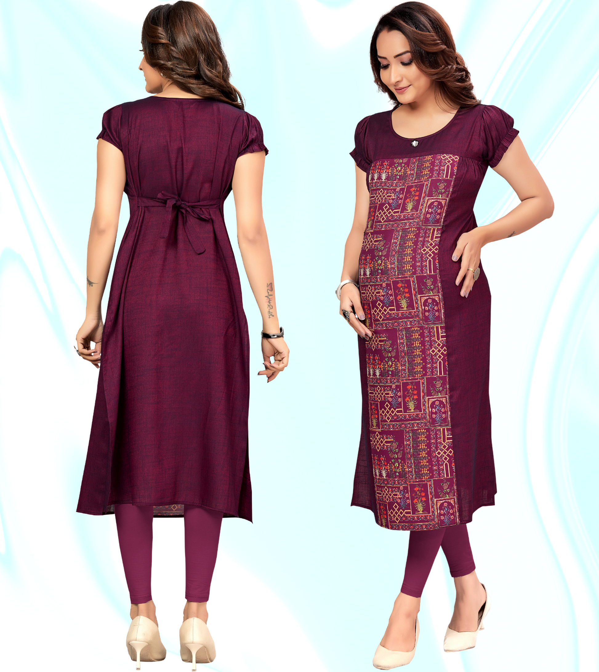 Delightful Purple Rayon Printed Straight Feeding Kurta