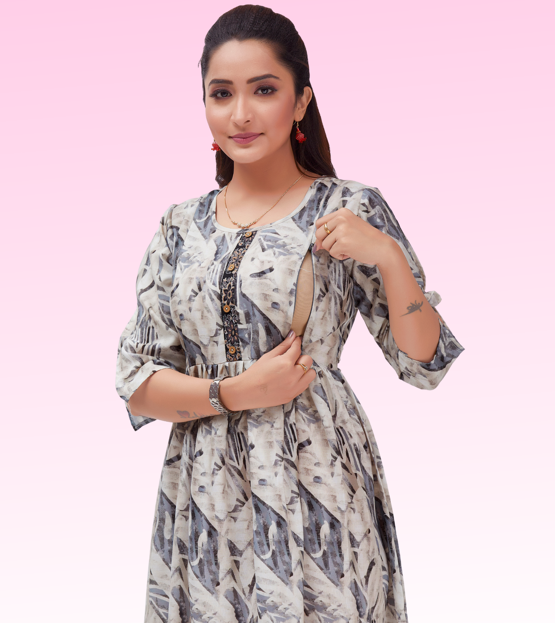 "Breastfeeding is so much easier with these kurtis. The fabric is light and the zippers are well-placed."