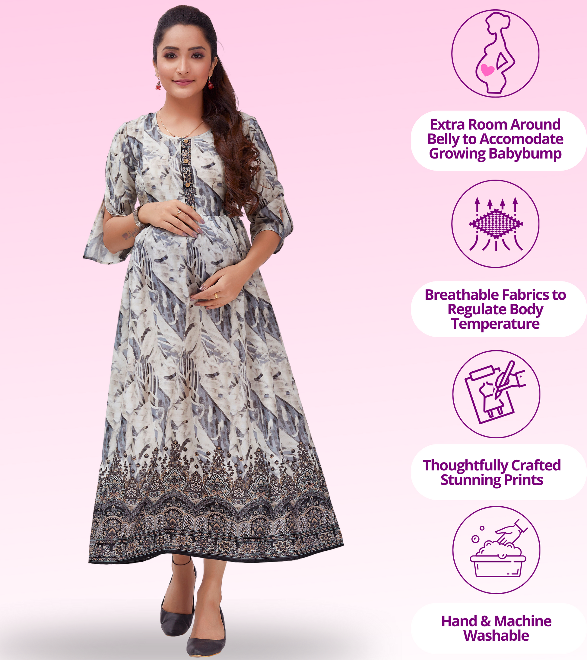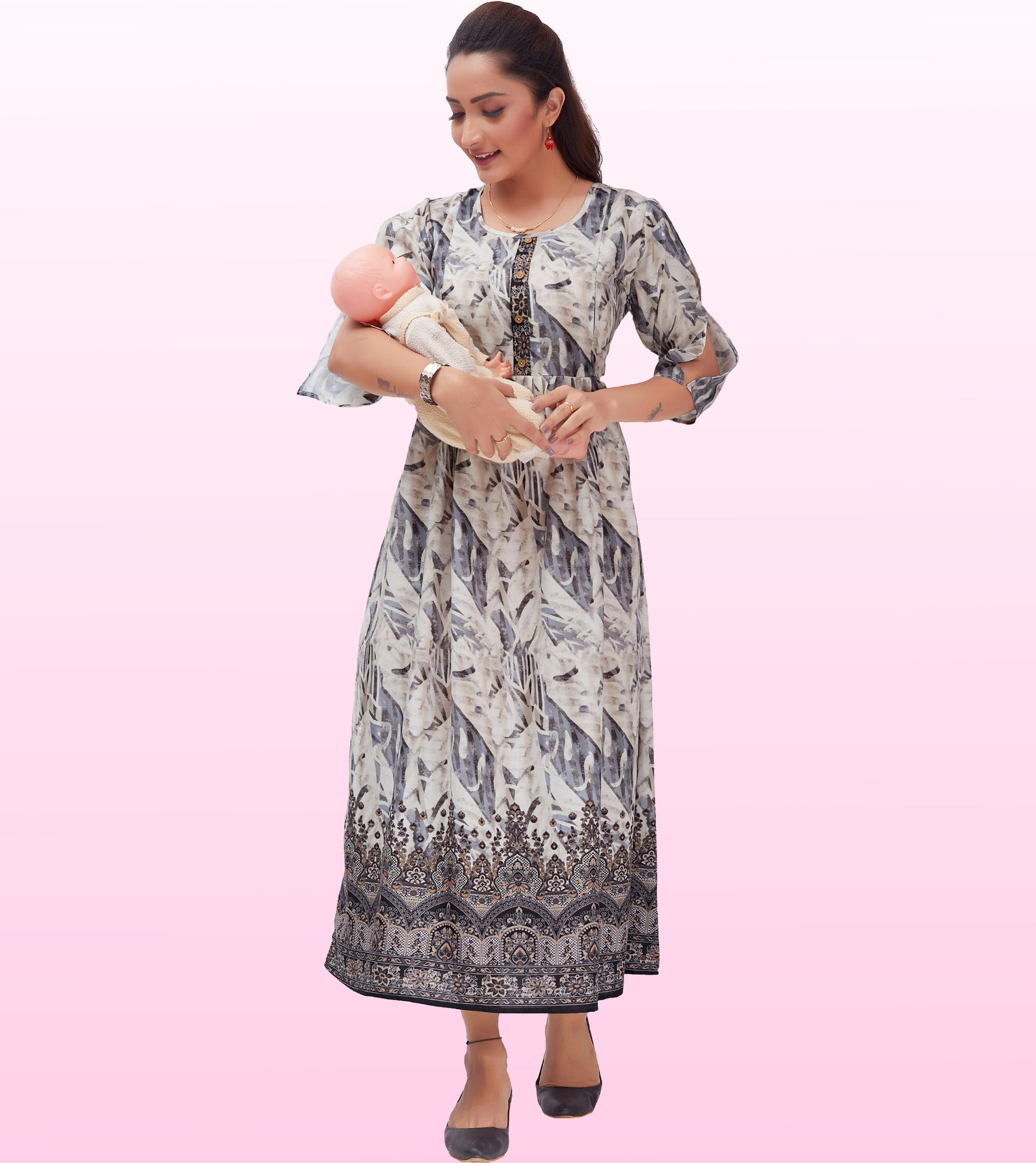 Evening Beige Cotton Printed Flared Feeding Kurta