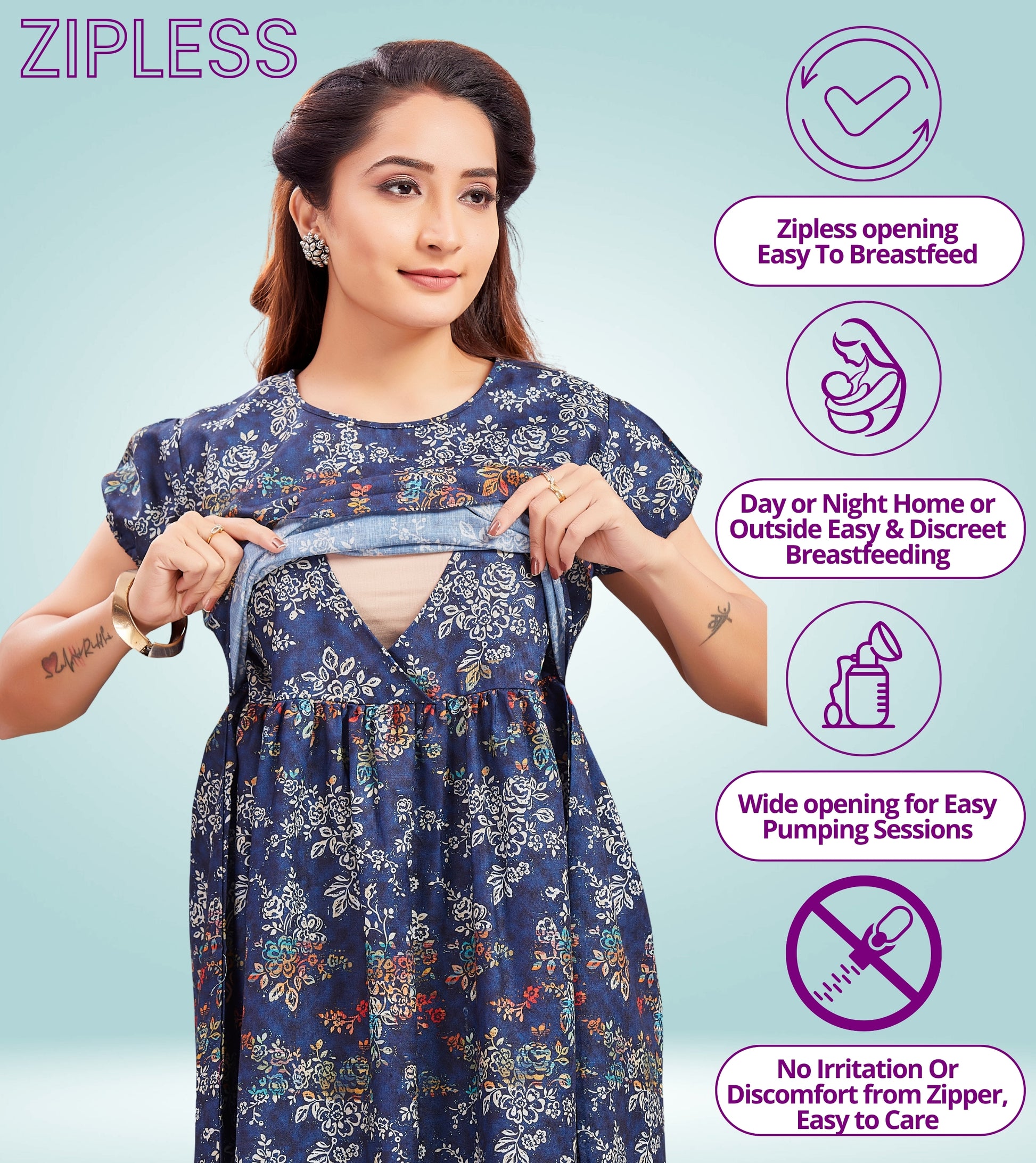 "Breastfeeding is so convenient with these zipless kurtis. The fabric is breathable and the zipless accesss are very practical."