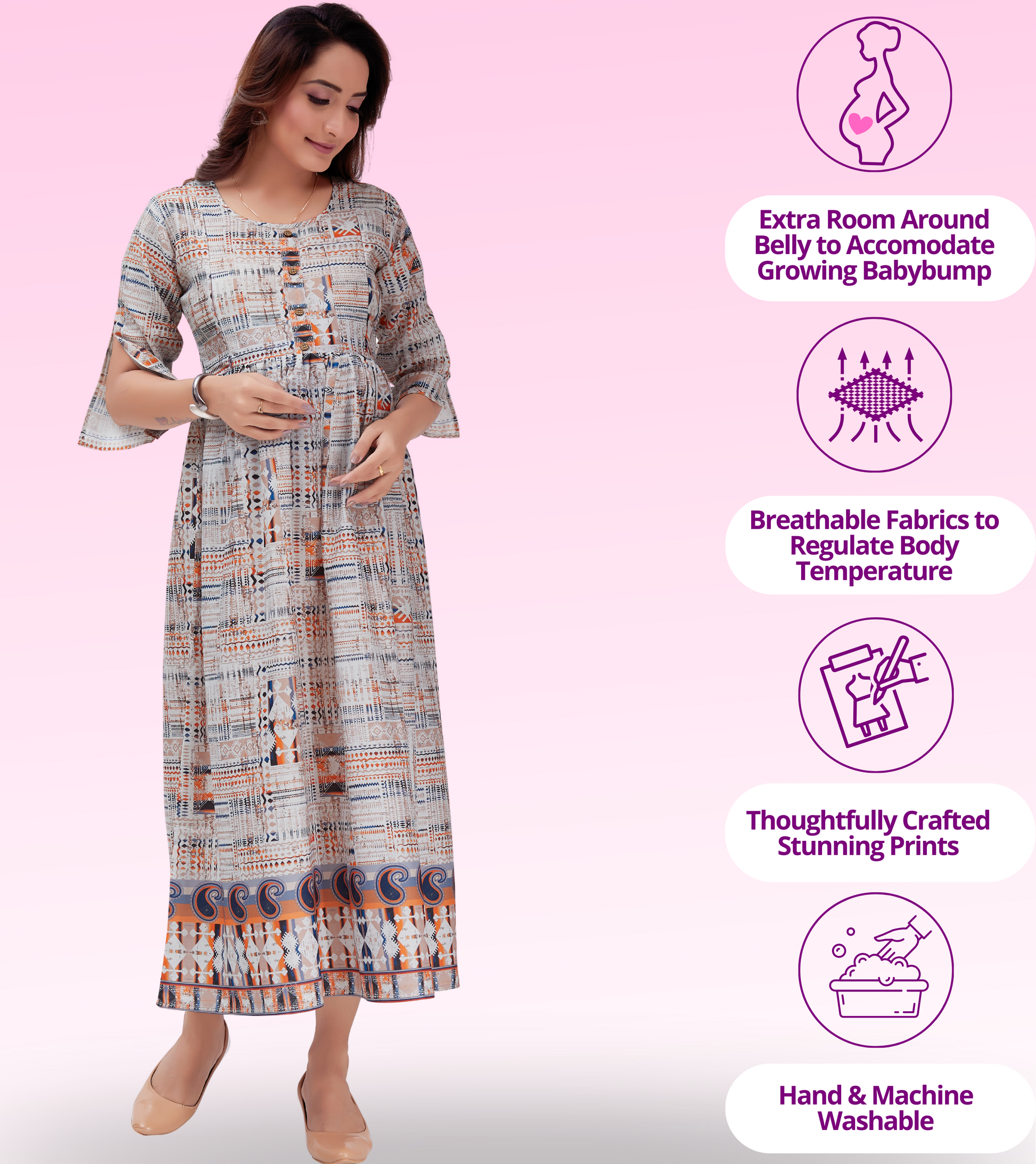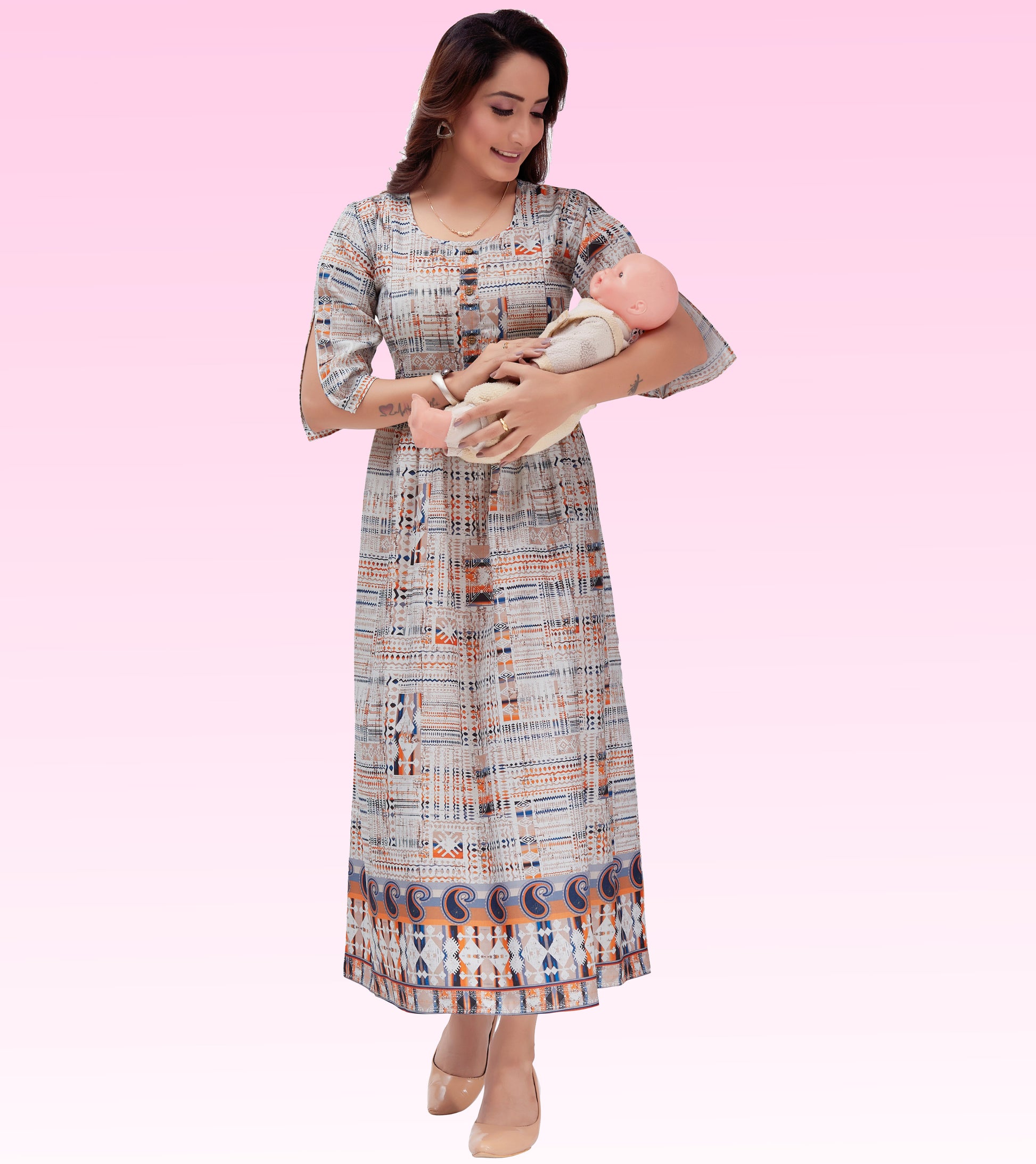 Evening Beige Cotton Printed Flared Feeding Kurta