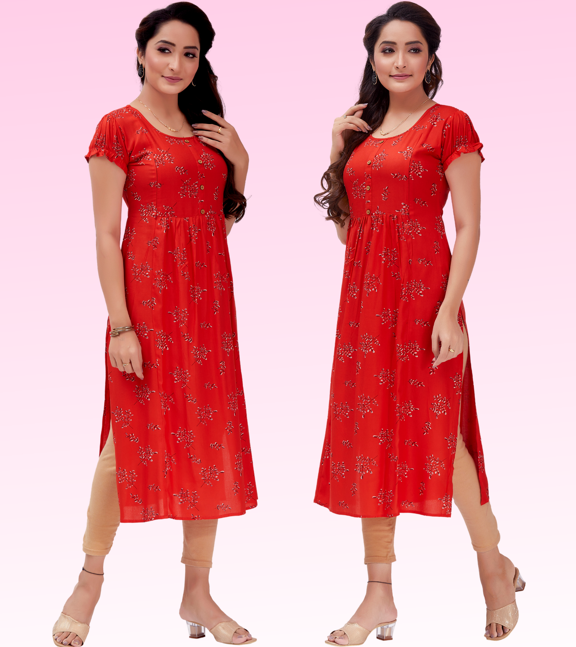 Elegant Pink Rayon Printed Straight Feeding Kurta