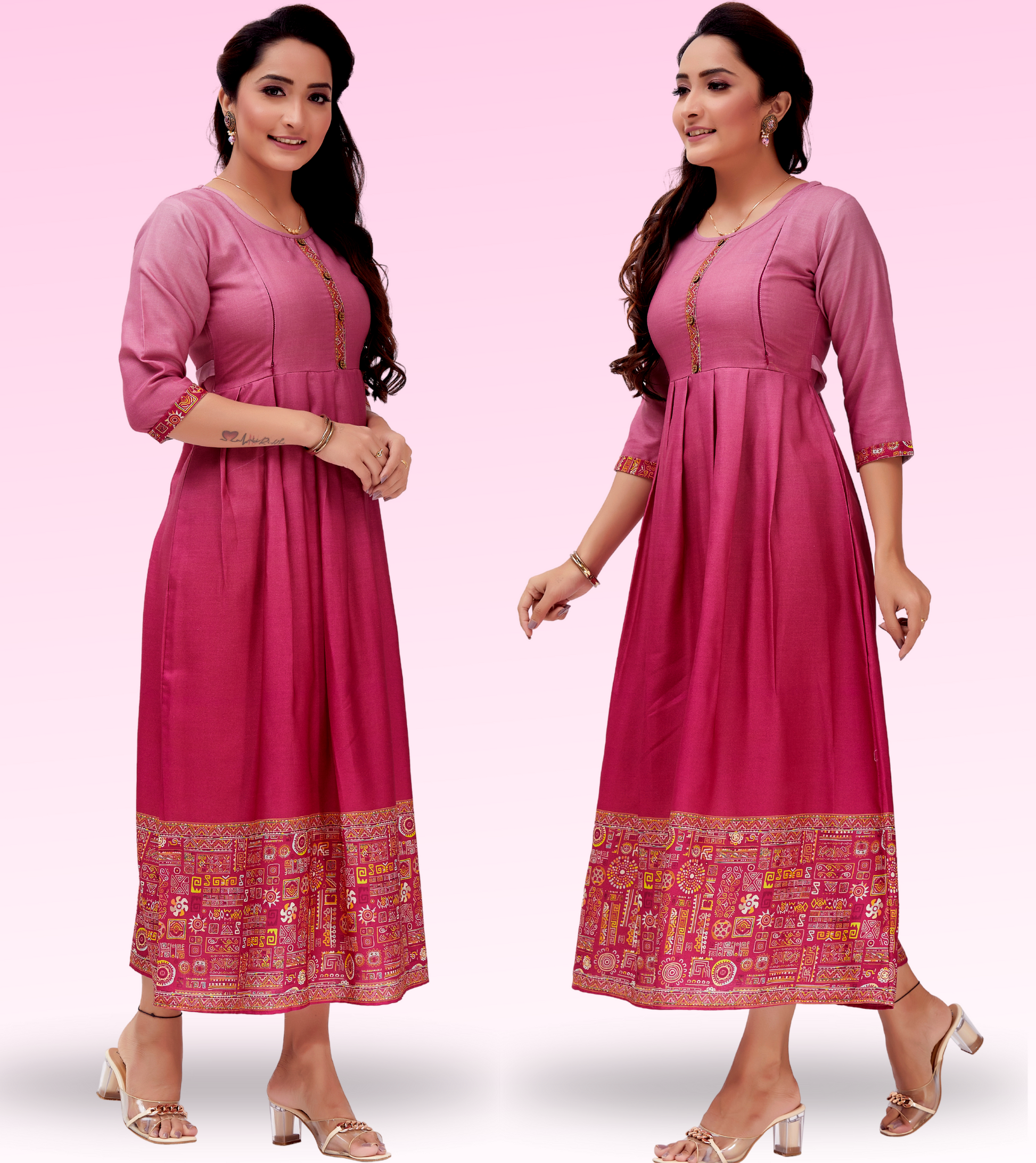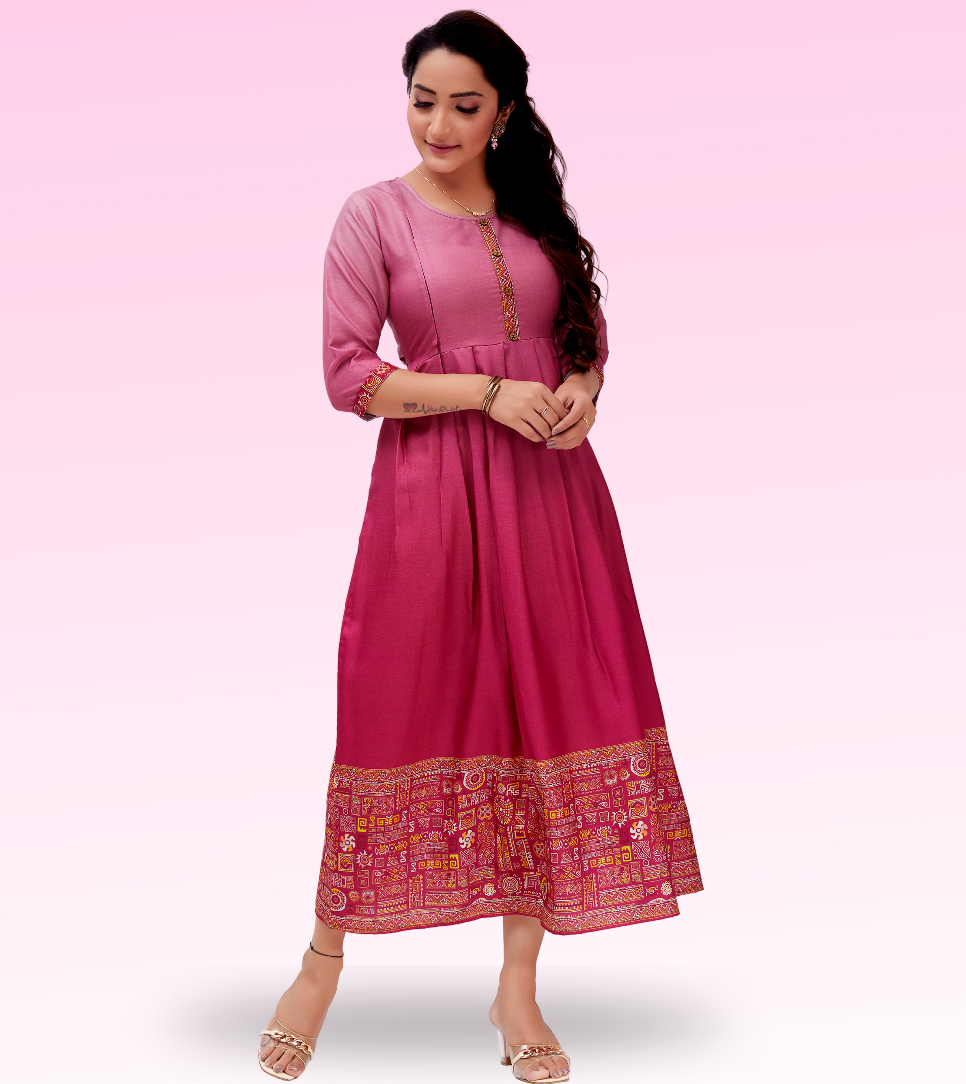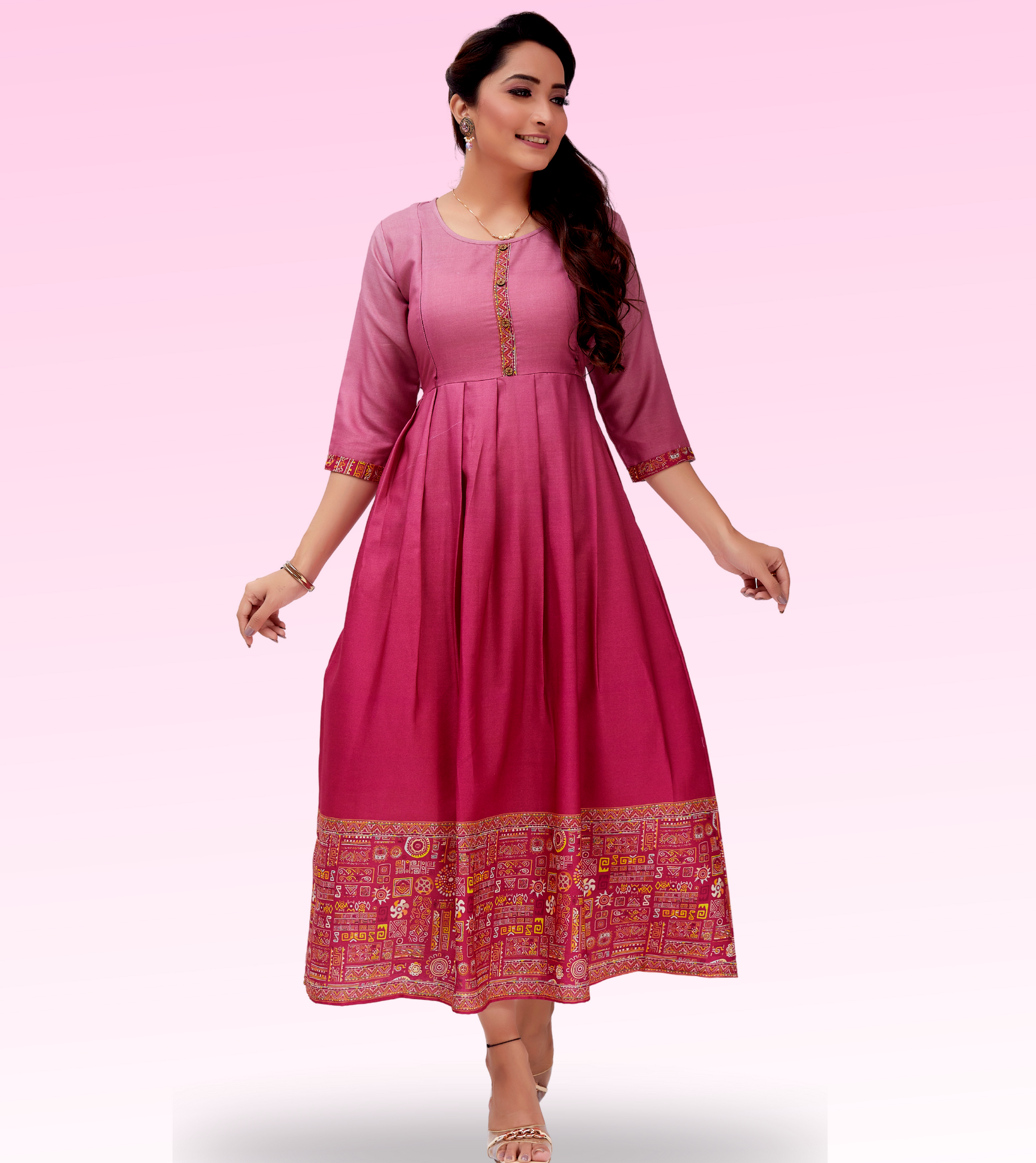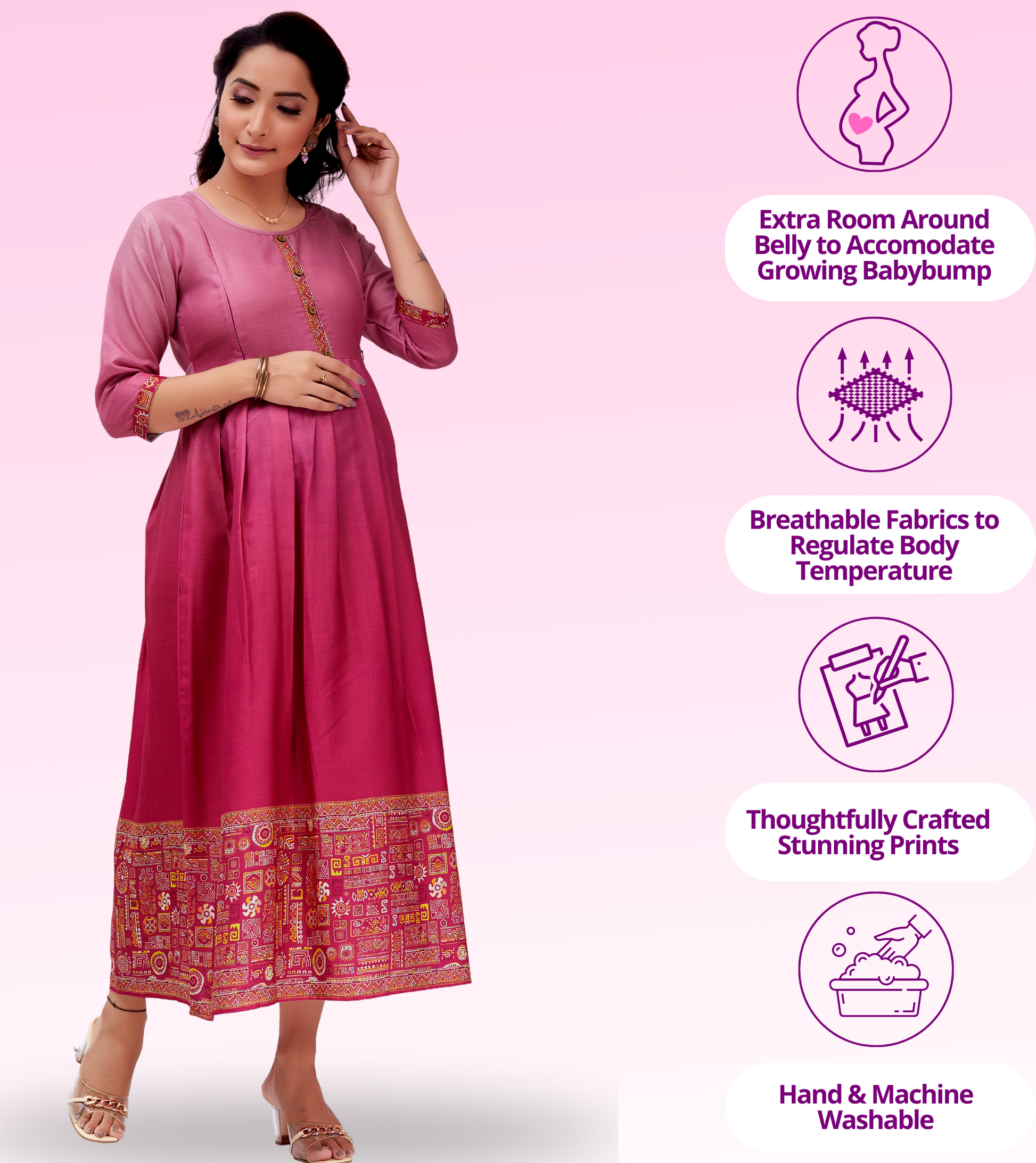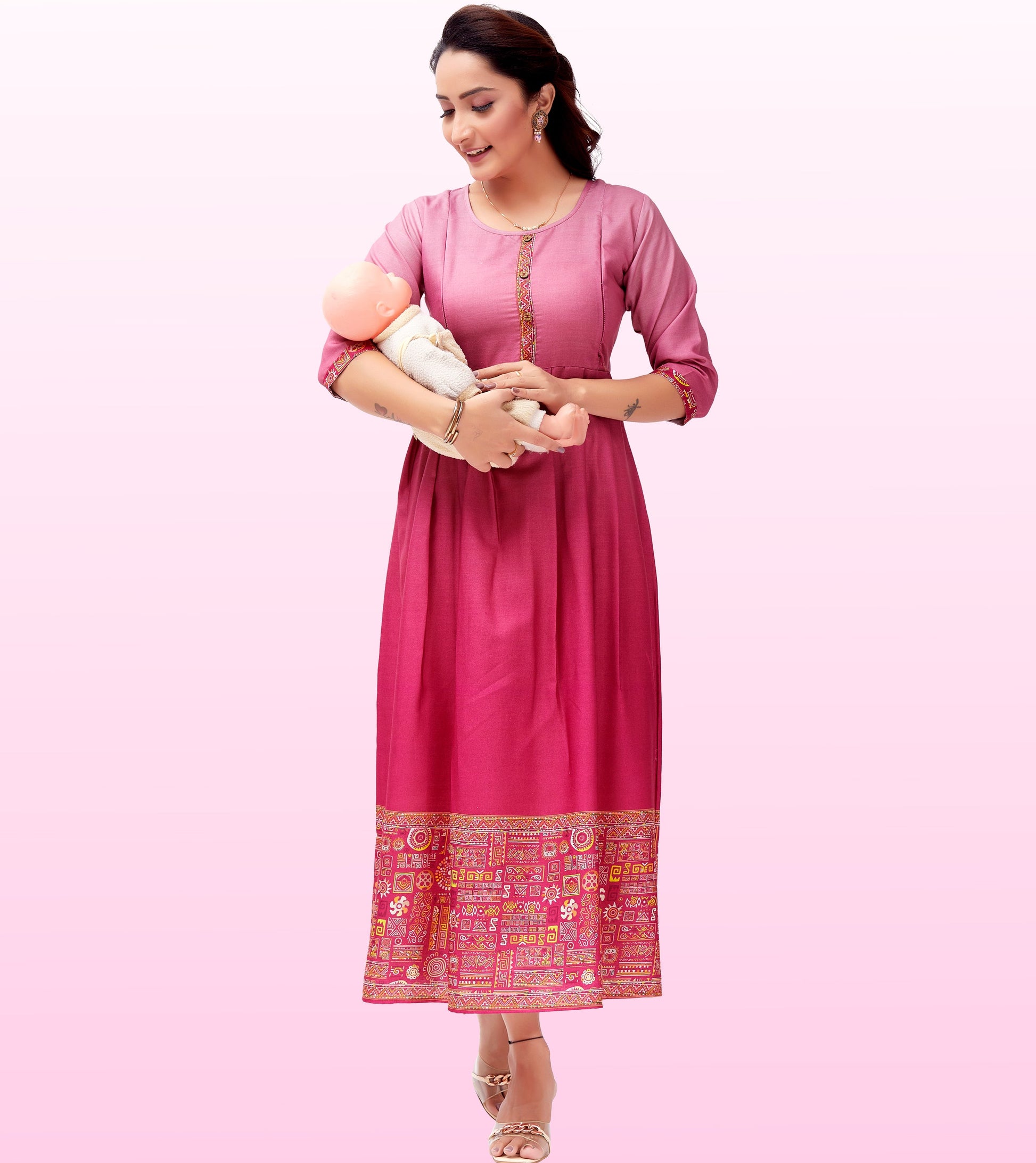 Flirty Pink Cotton Printed Flared Zipless Feeding Kurta
