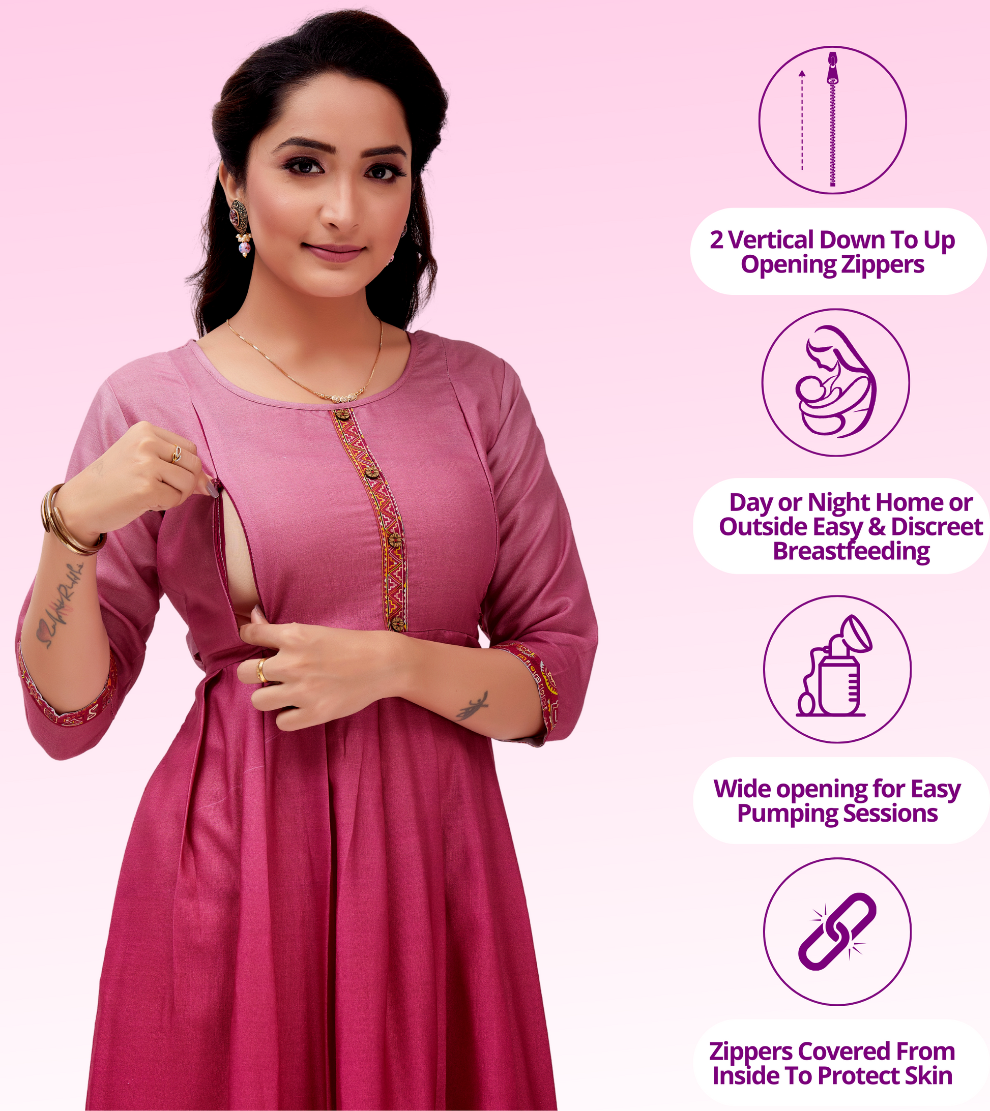 "These feeding kurtis are amazing. The zippered openings make breastfeeding effortless, and the fabric is so soft and breathable. A must-have for new moms."