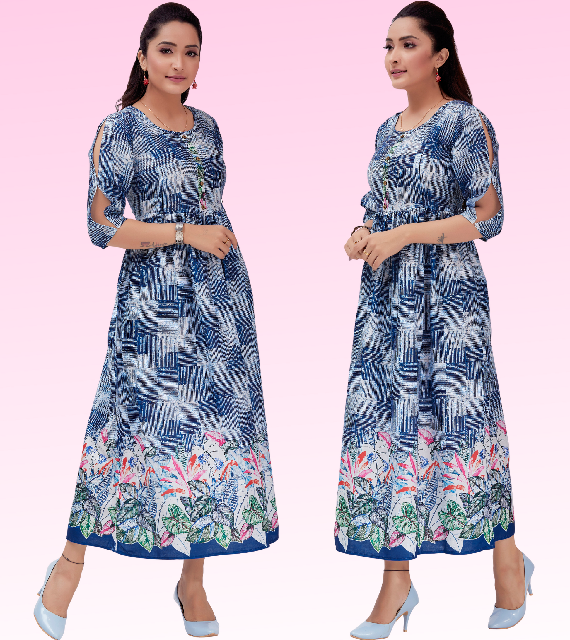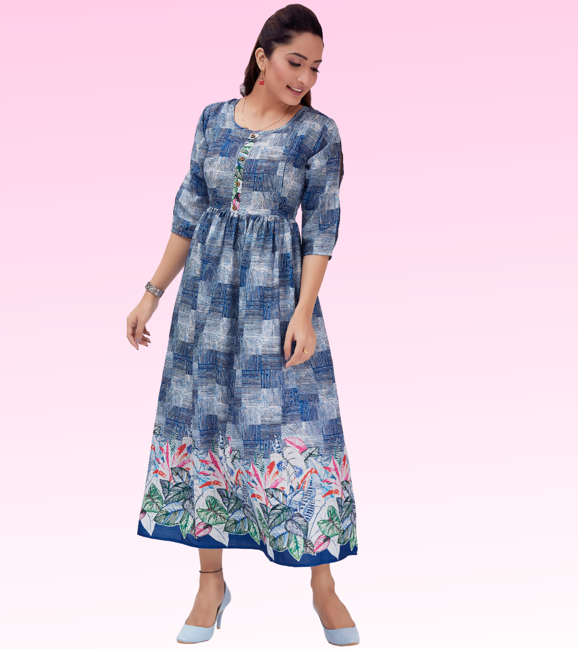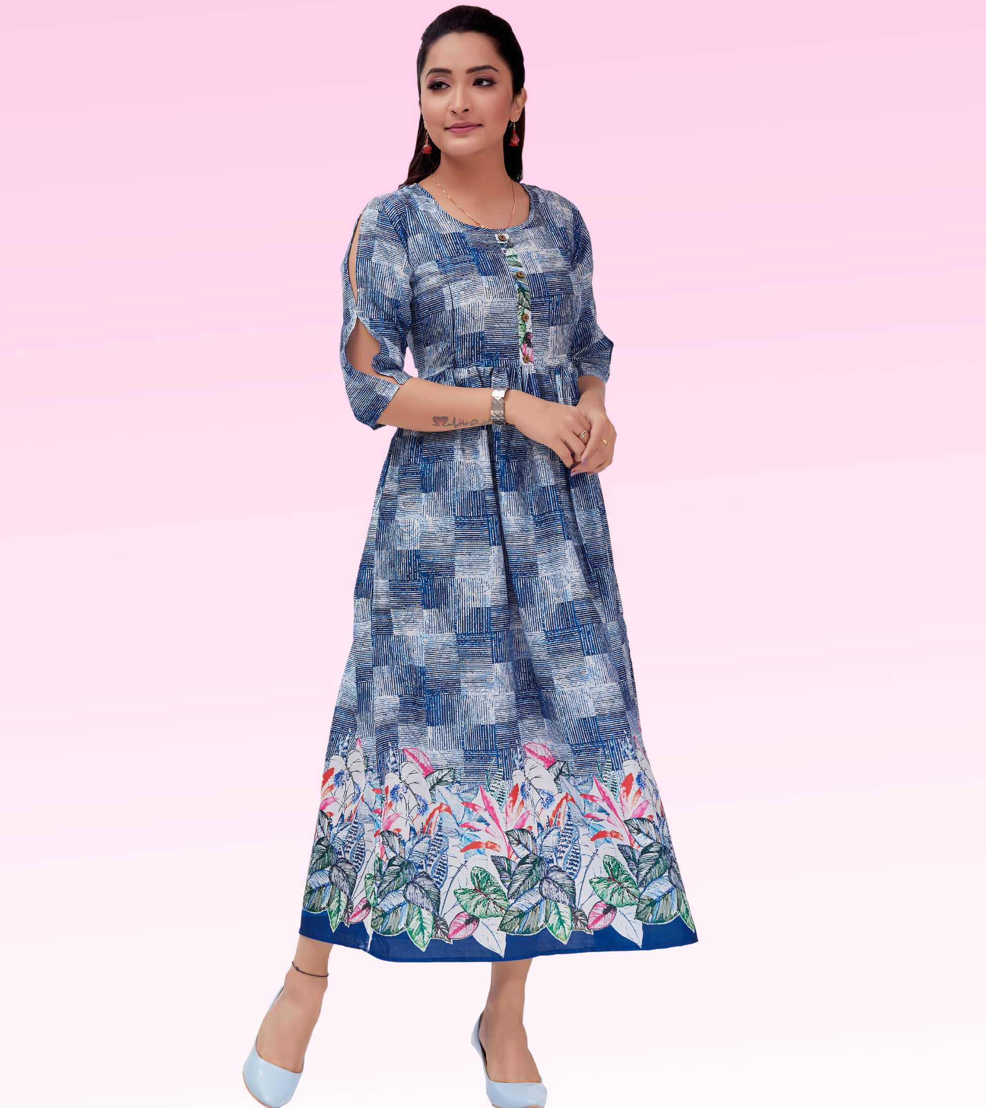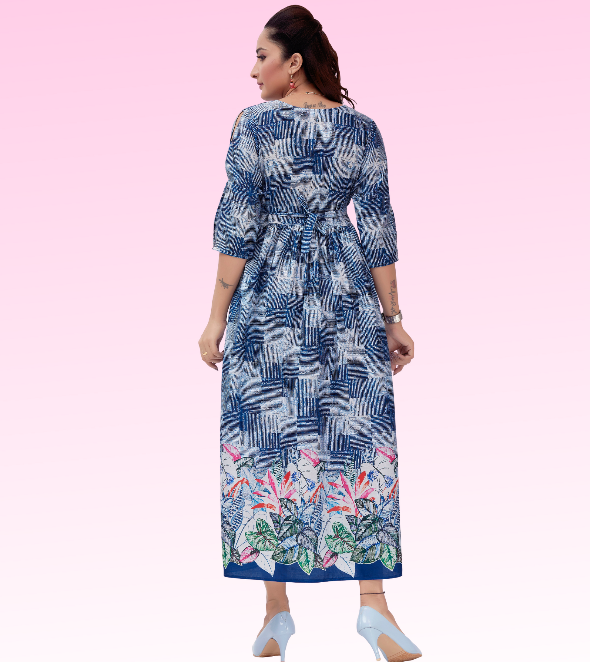 Exotic Blue Cotton Printed Flared Feeding Kurta