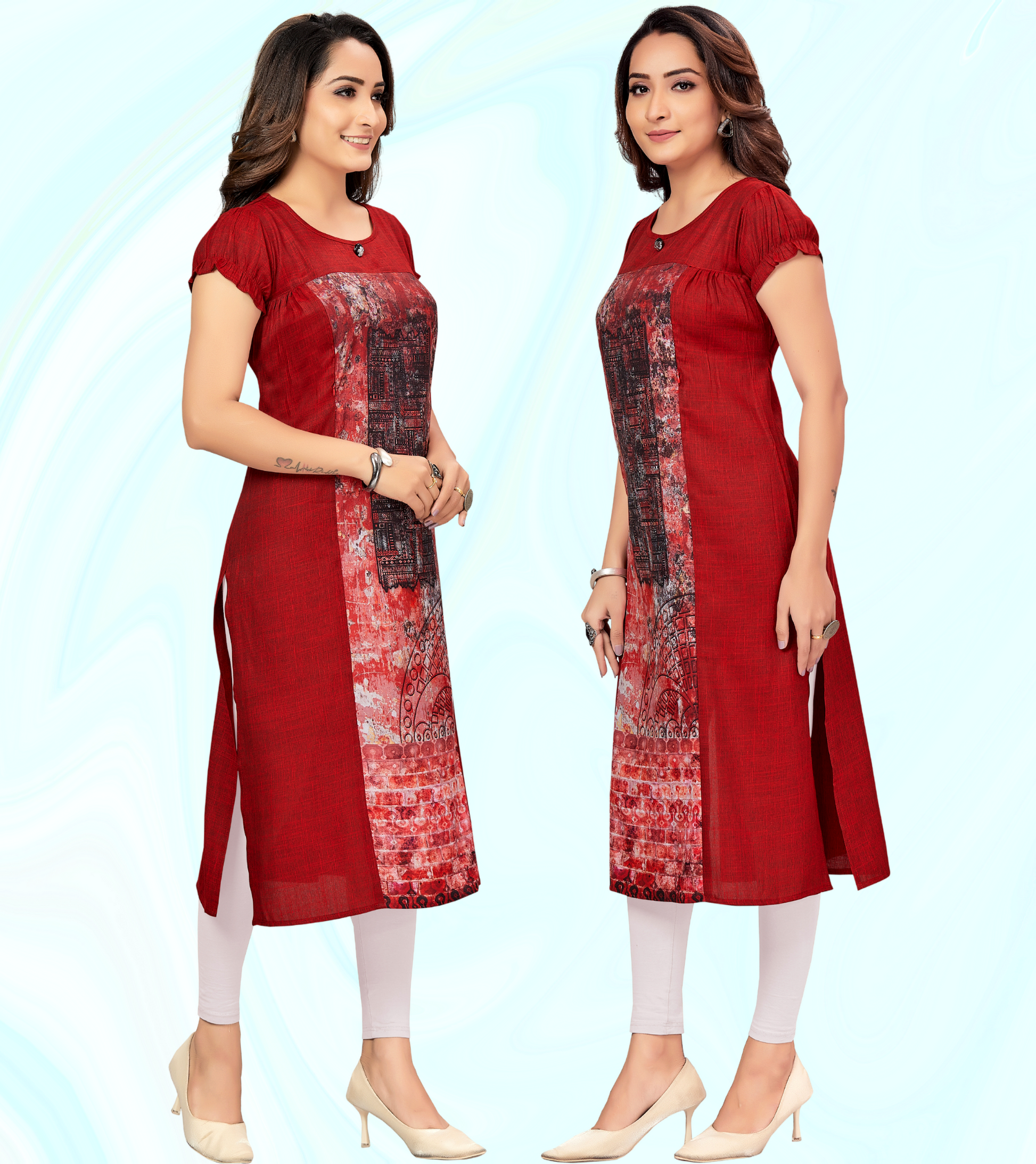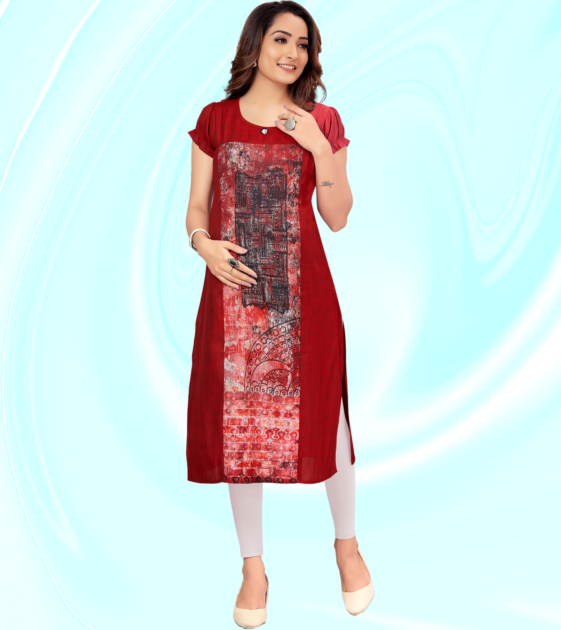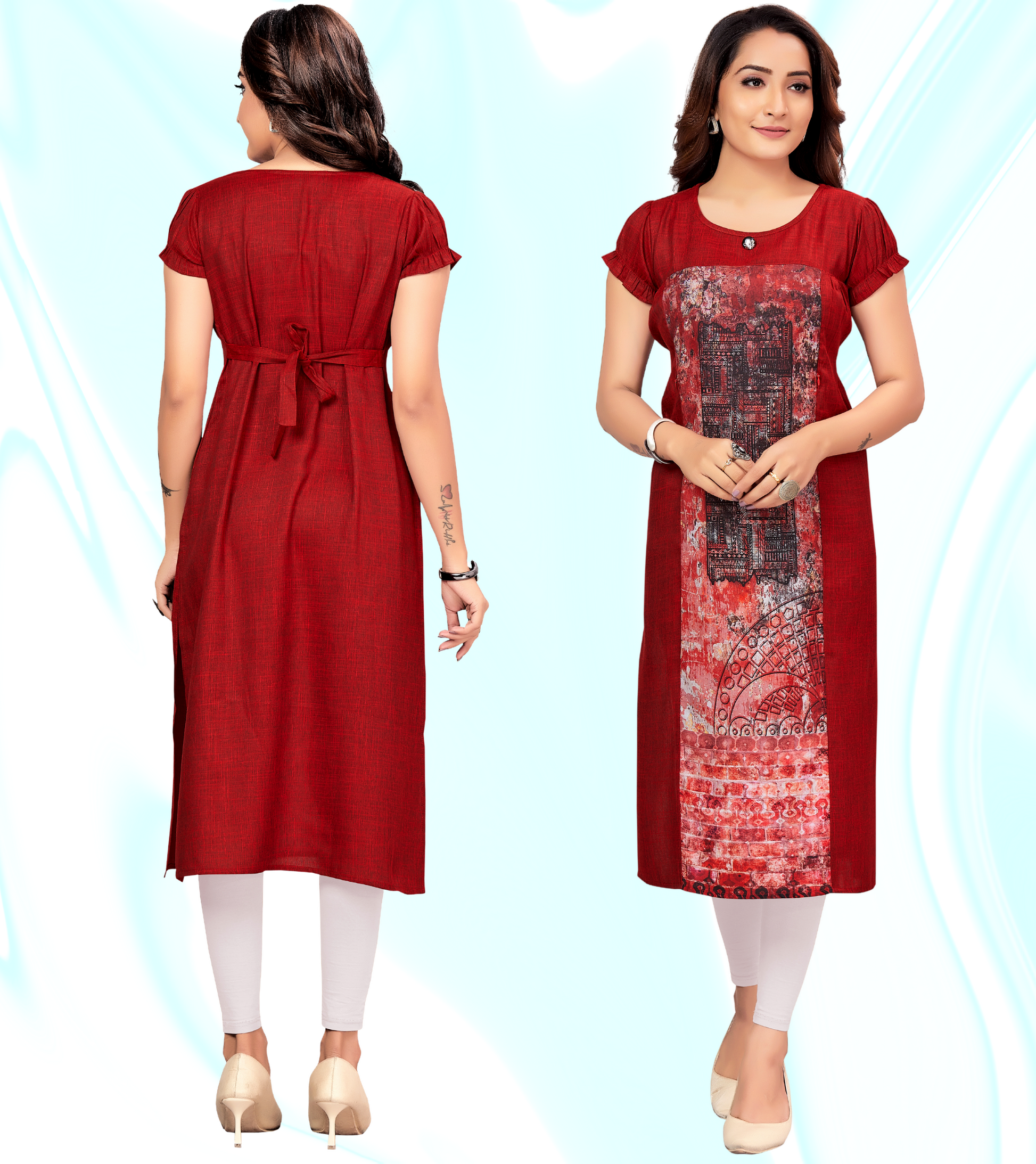 Exotic Red Rayon Printed Straight Feeding Kurta