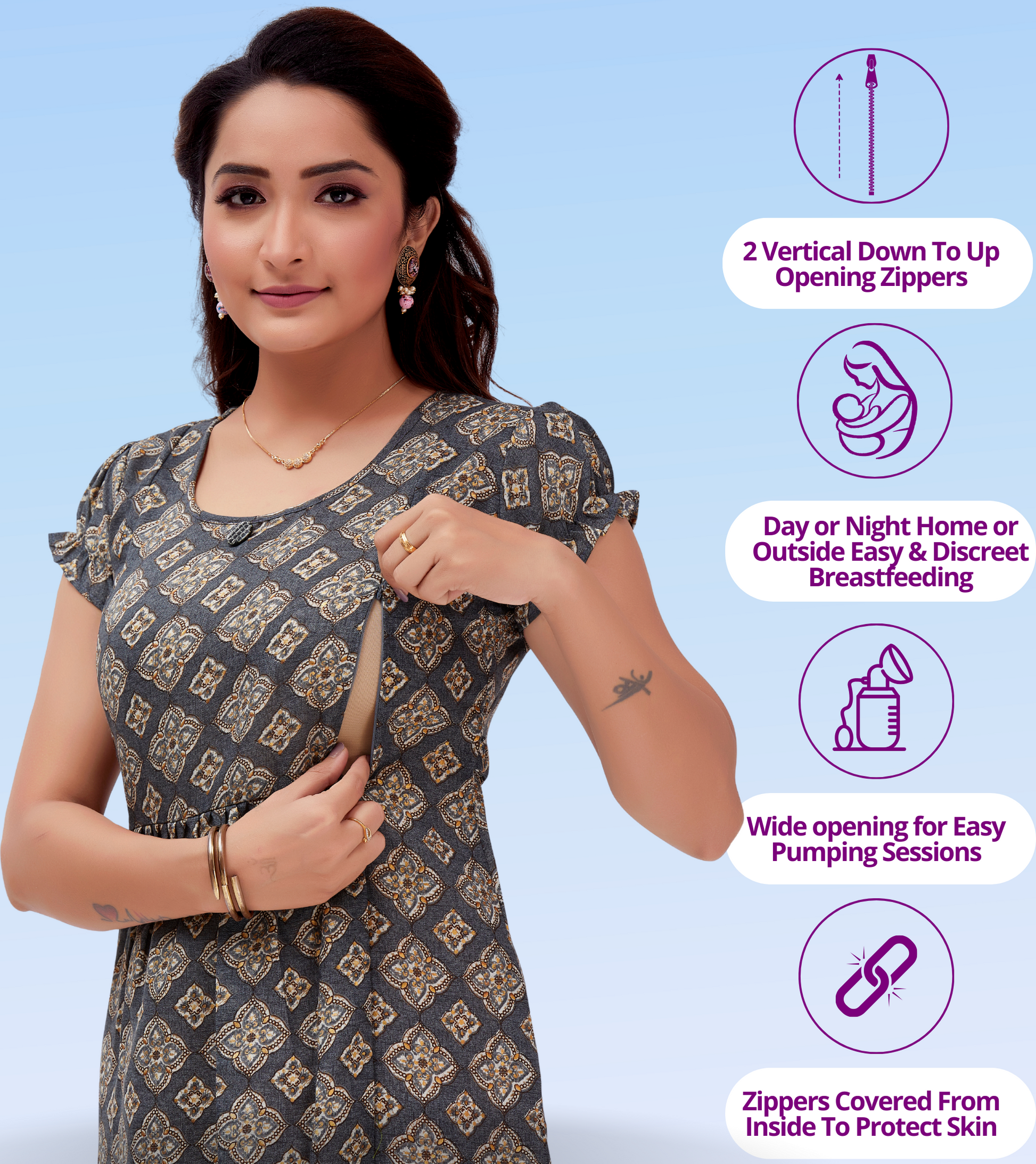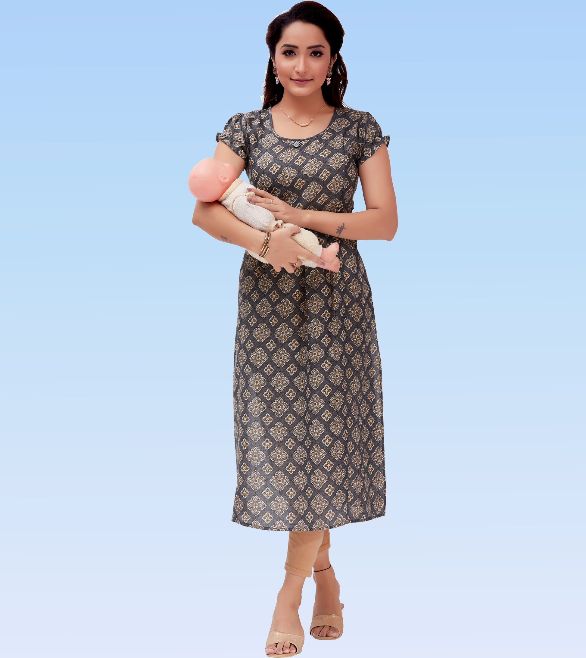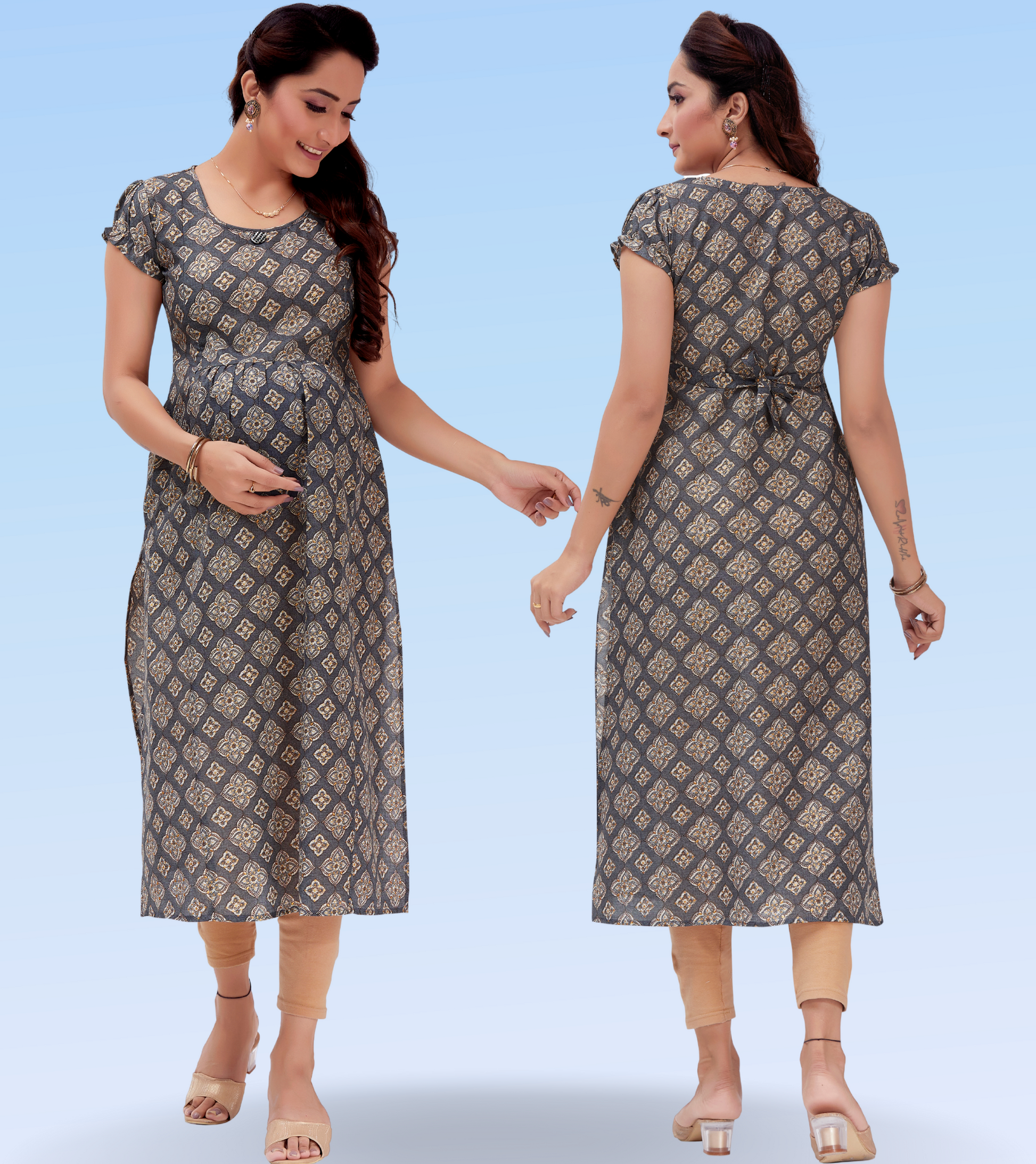 "Breastfeeding is so convenient with these kurtis. The fabric is light and the zippers are well-placed."