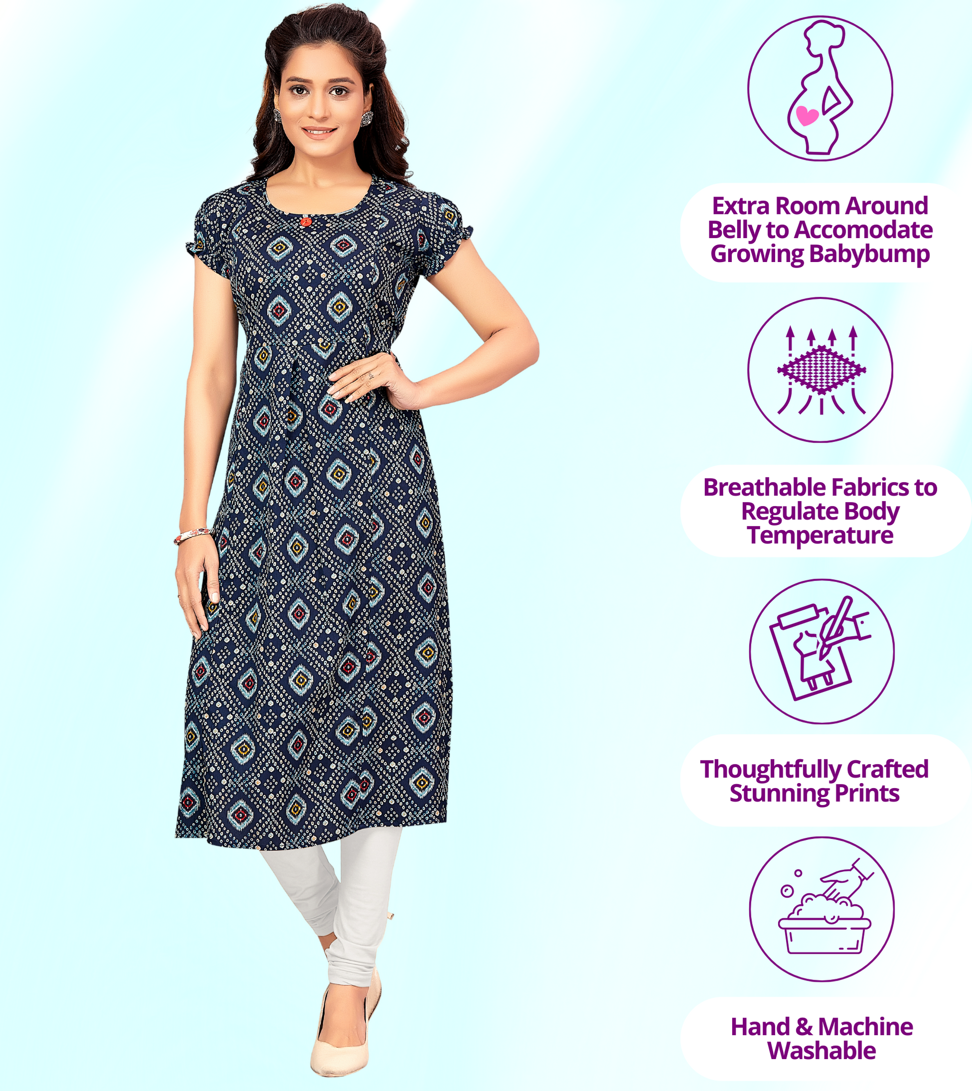 These kurtis are fantastic for breastfeeding moms. The zippers are well-placed and easy to use, and the fabric is light and airy, perfect for indian weather. ☀️👶