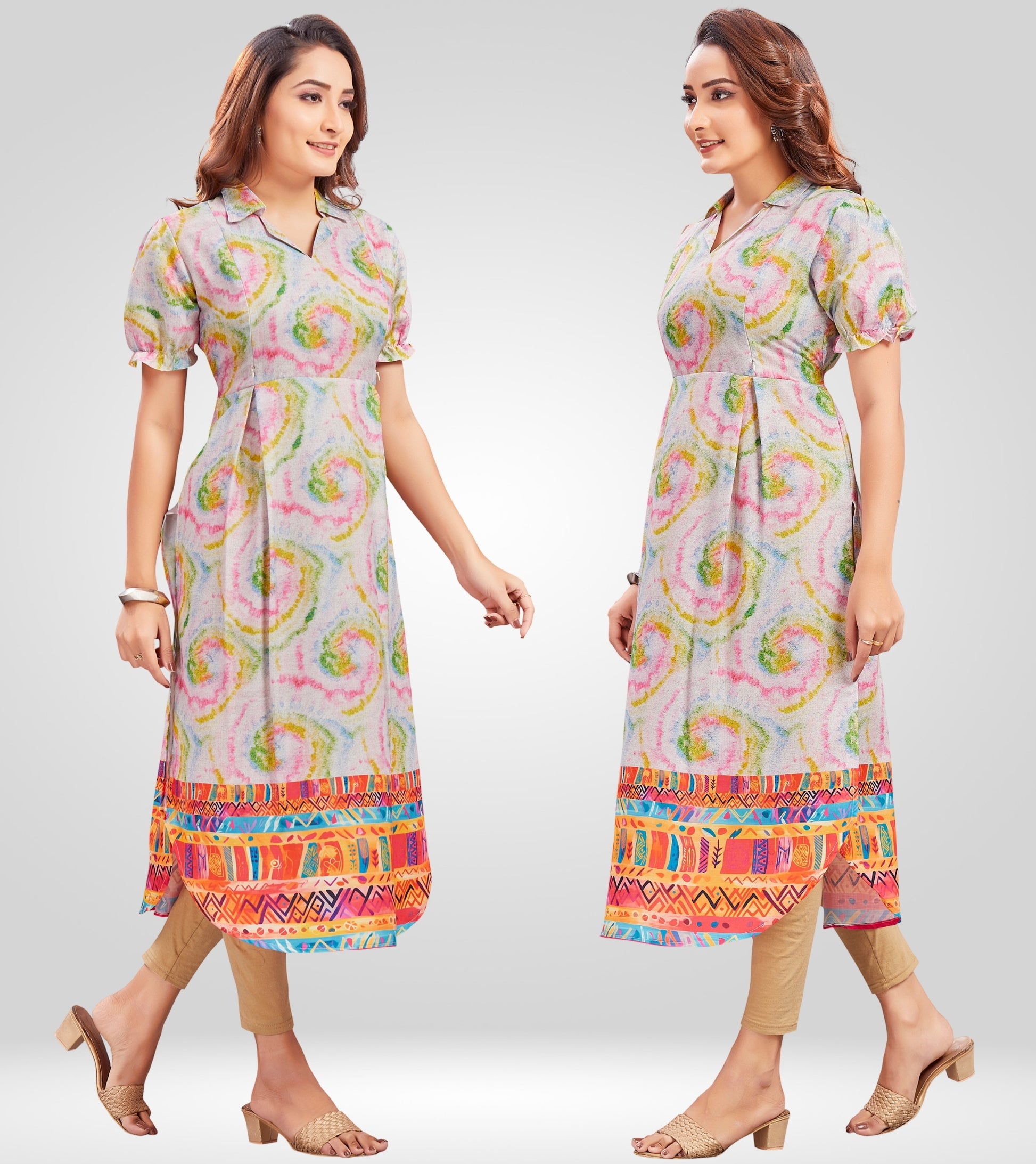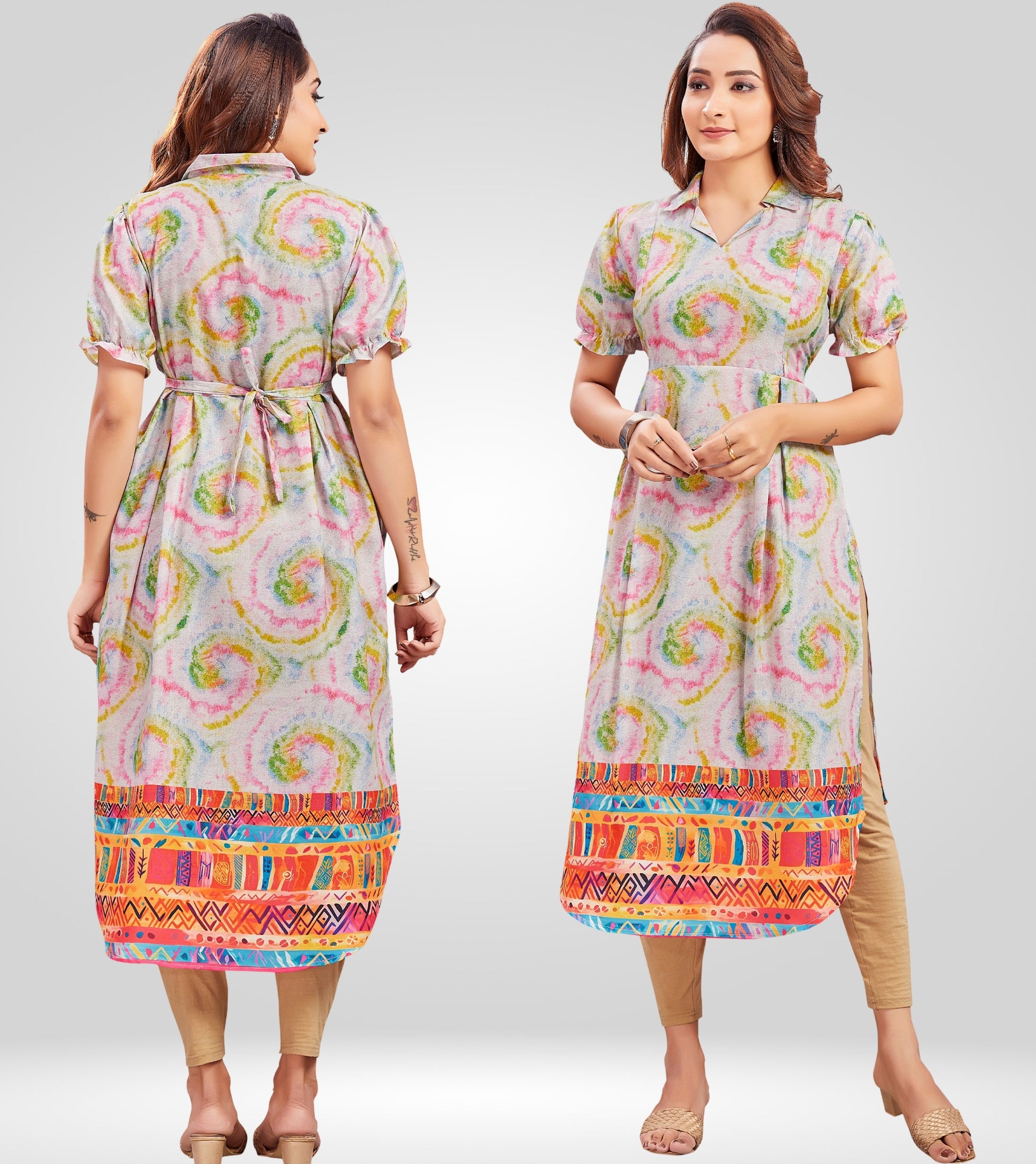 "These kurtis are perfect for breastfeeding. The fabric is breathable and the zippers are very practical."