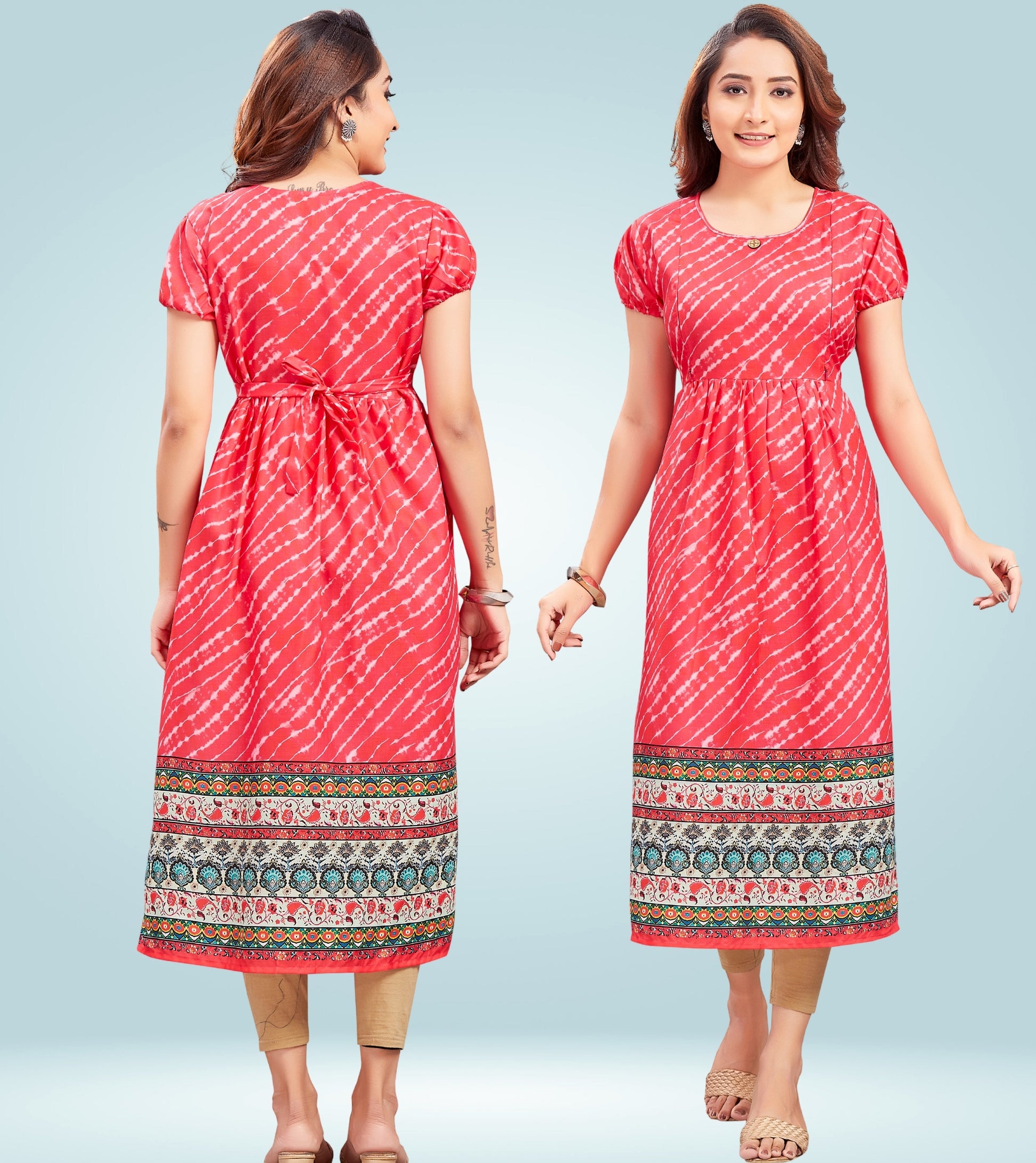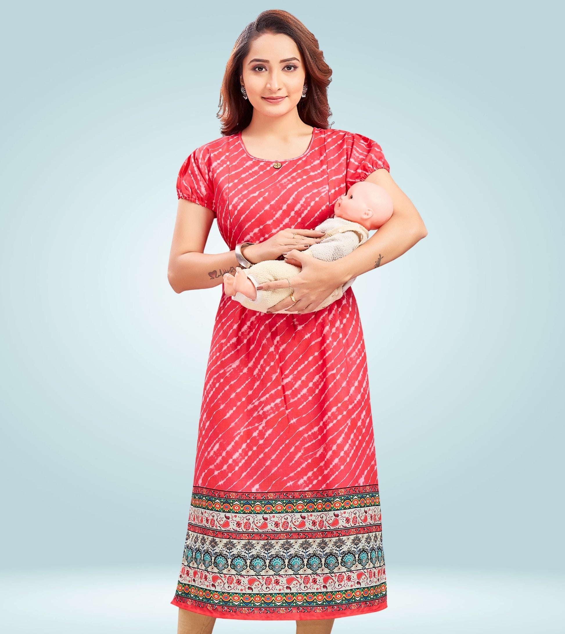 Fawny Red Cotton Printed Flared Zipless Feeding Kurta