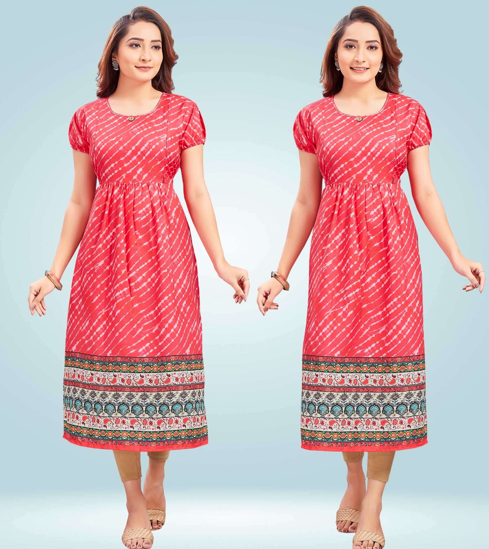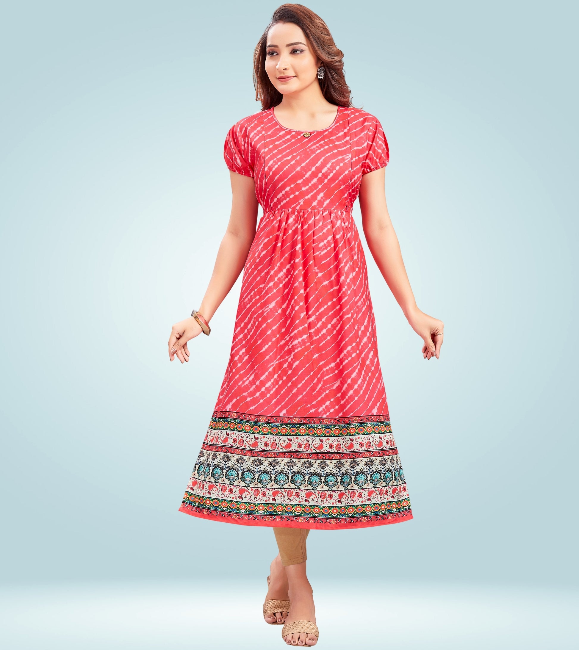 Flirty Pink Cotton Printed Flared Zipless Feeding Kurta