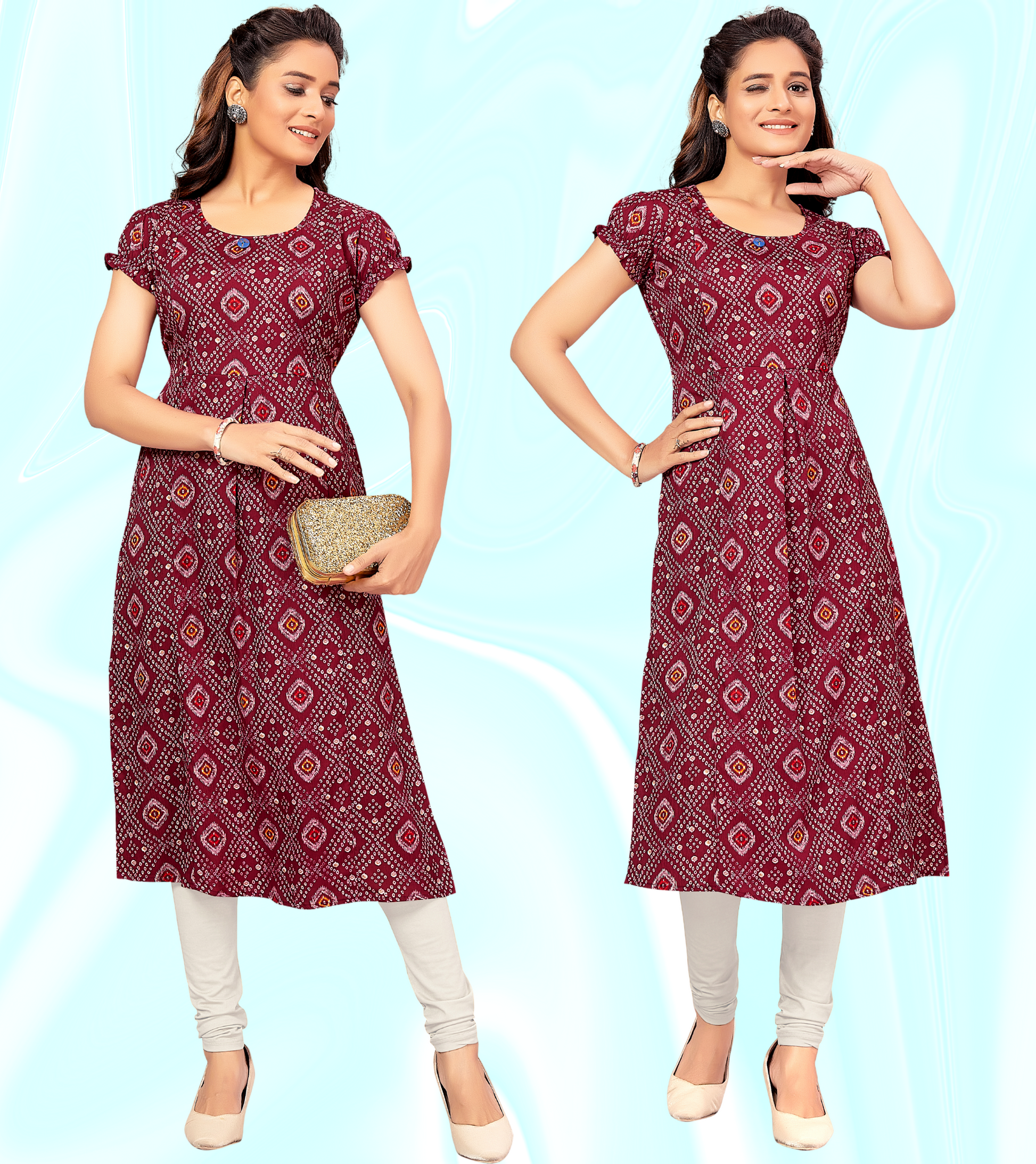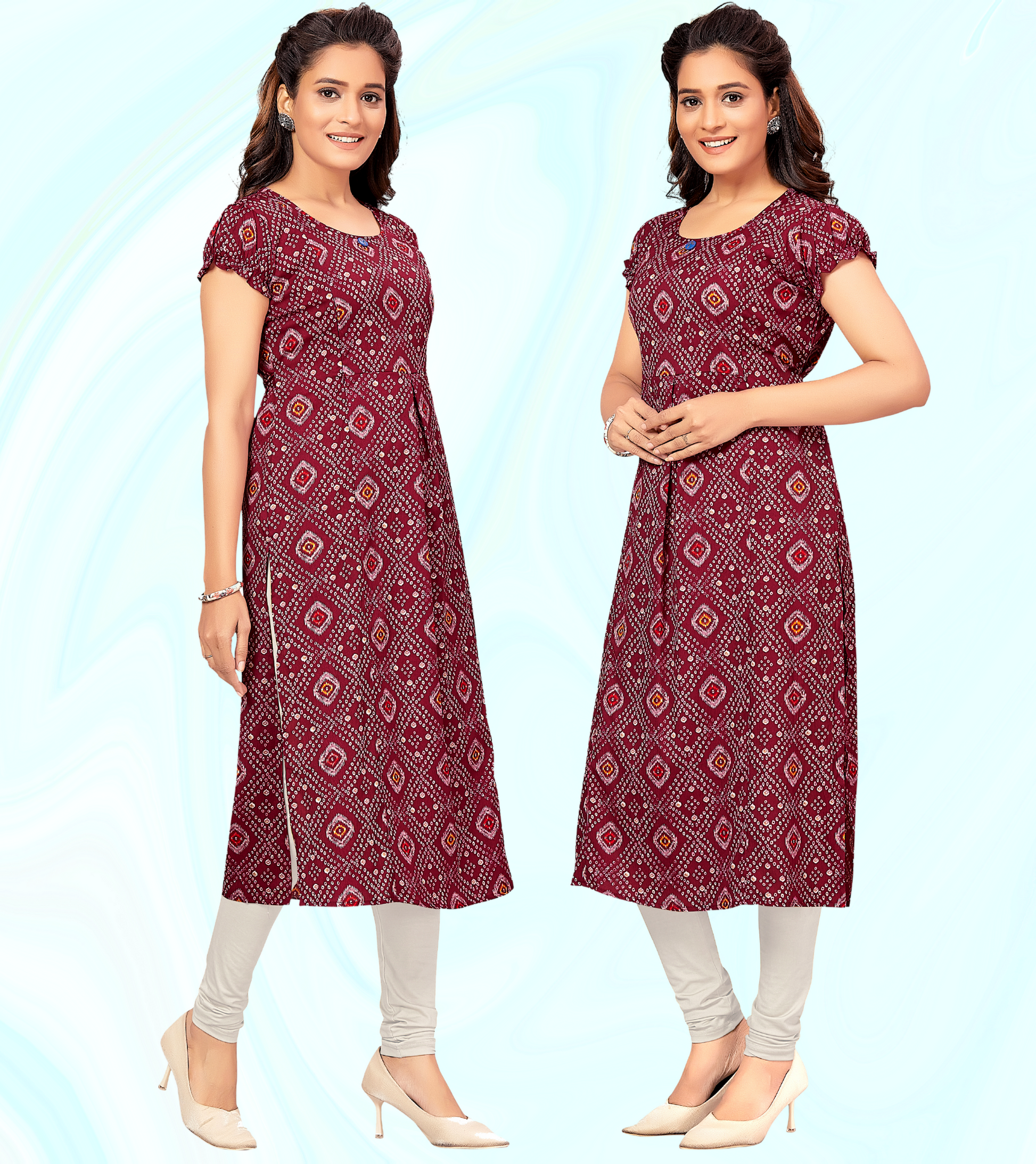 Simply Wine Poly Wrinkle Printed Straight Feeding Kurta