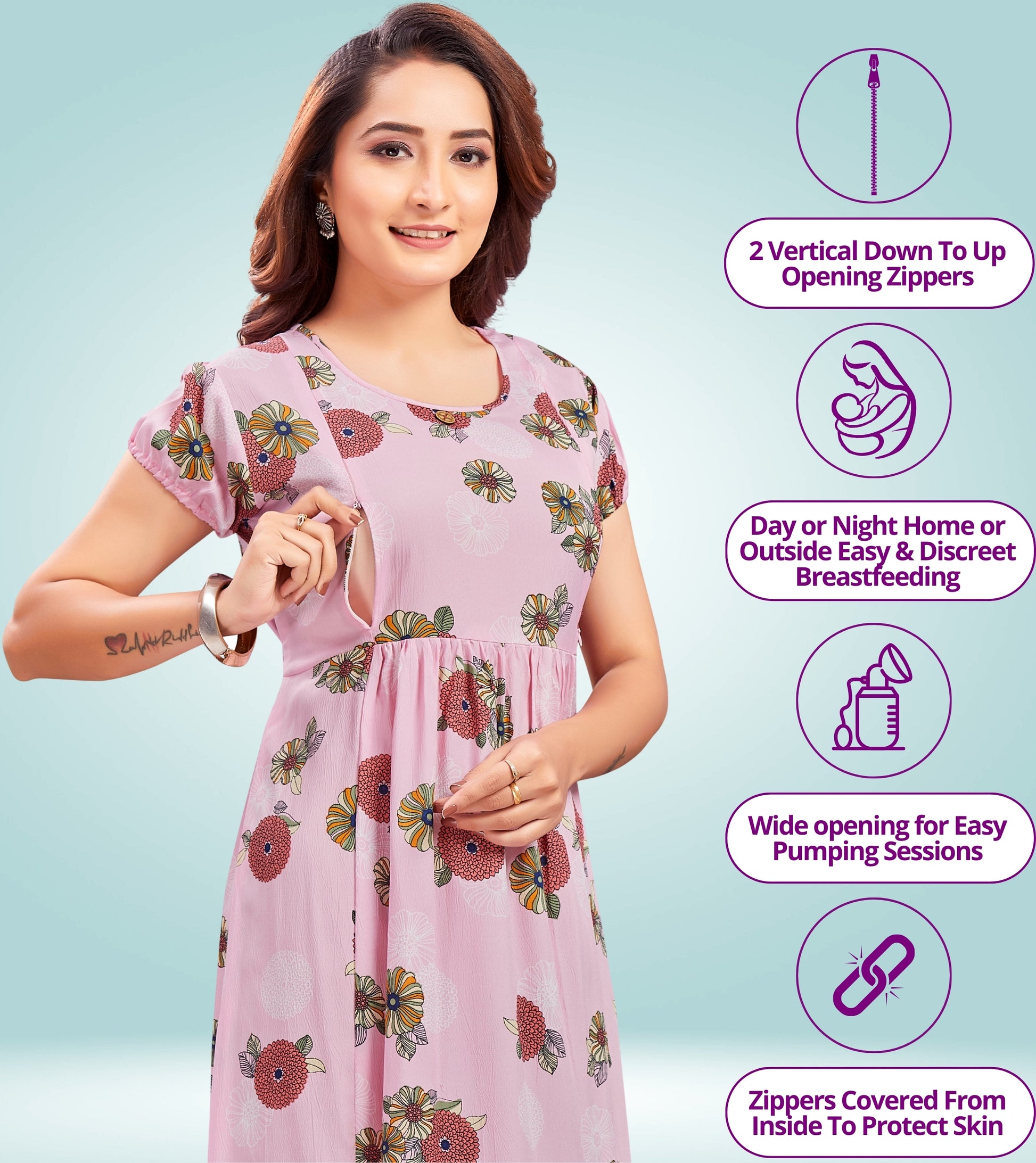 "These kurtis are a must-have for nursing moms. The zippers are discreet and make breastfeeding simple, while the fabric is soft and breathable."