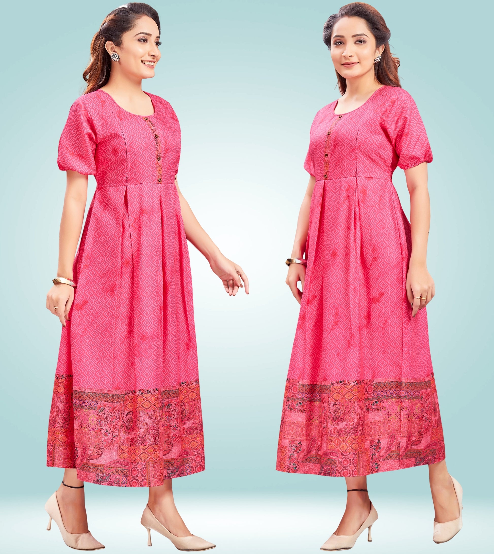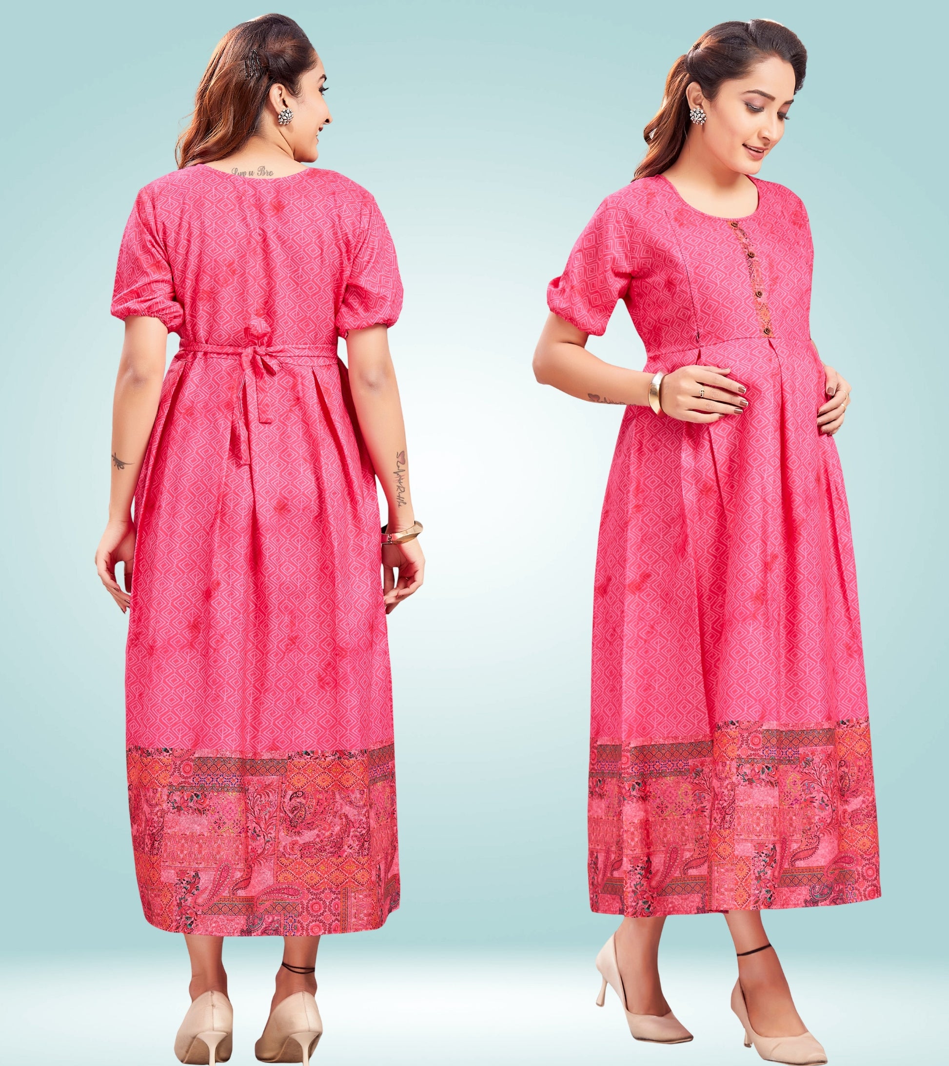 Excellent Pink Cotton Printed Flared Feeding Kurta