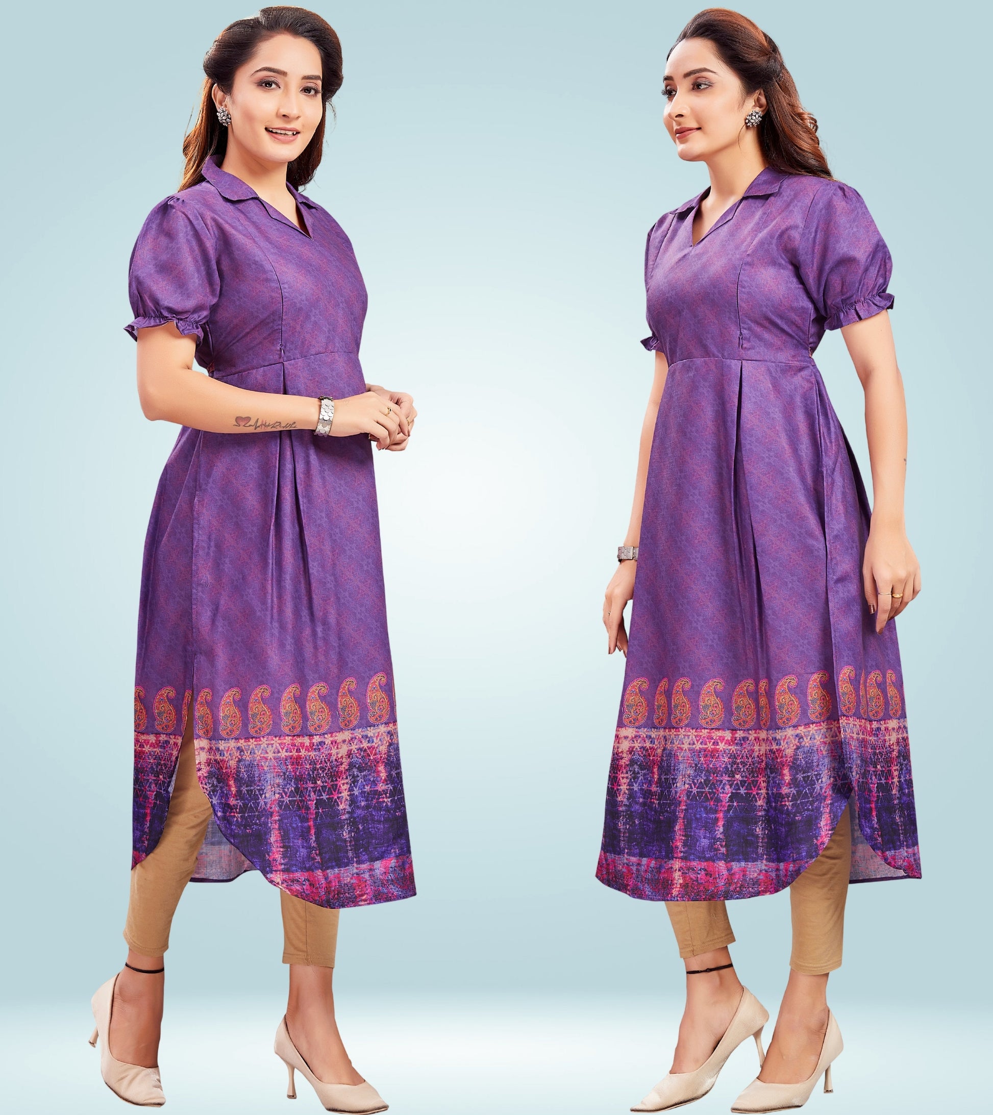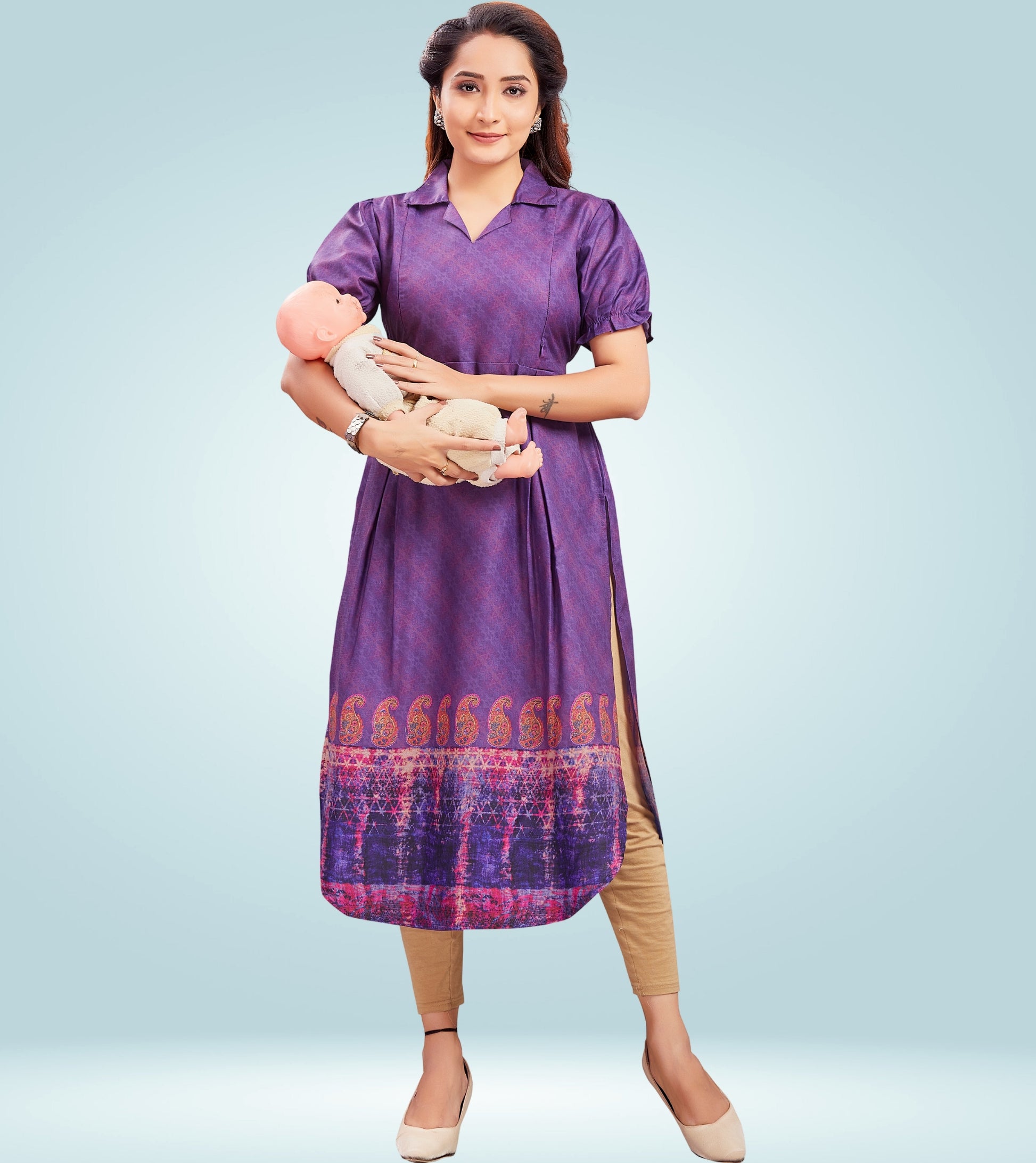 Sweet Purple Cotton Collared Neck Straight Feeding Kurta